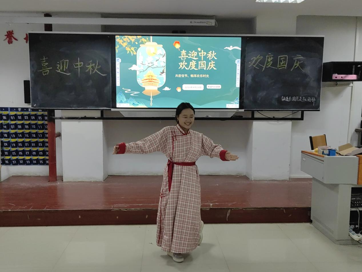 活动伊始,主持人介绍了本次活动的主题意义与流程安排。猜灯谜、诗词接龙和爱国知识问答环节依次进行,同学们踊跃参与,在轻松愉快的氛围中加深了对传统文化的理解,激发了爱国热情。随后的文艺表演环节中,歌曲演唱、舞蹈展示等节目衔接紧凑、精彩纷呈,掌声与欢呼声此起彼伏,气氛层层高涨。格日勒同学献唱的蒙古族歌曲《乌兰巴托的夜》,旋律悠扬,情感真挚,展现了草原之夜的静谧与深情;张梅燕同学表演的蒙古舞节奏明快、动作舒展,赢得了观众的阵阵喝彩;李昕澄同学的独唱《最美的期待》,音色清澈动人,情感真挚自然,以动人的旋律,谱写青春的壮丽诗篇。活动最后,主持人进行总结发言,勉励青年学子以文化厚植底蕴、以家国铸牢根基,于传承中勇担使命,于奋进中再续华章。