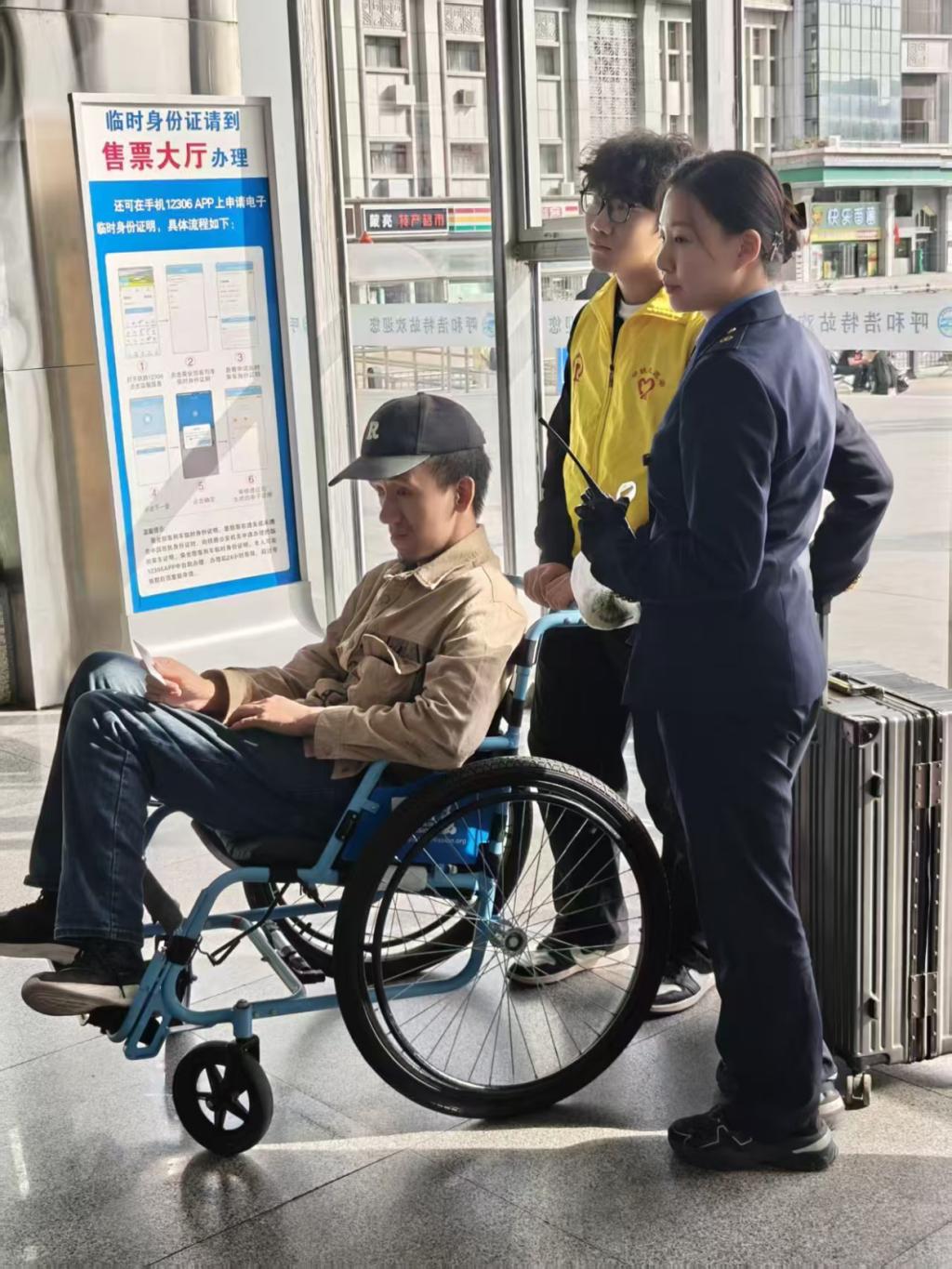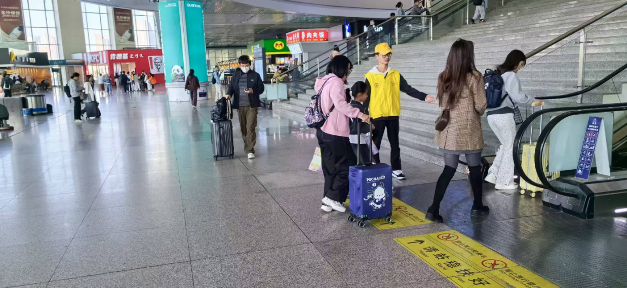 志愿服务内容紧扣旅客实际需求,涵盖问路指引、行李协助、突发情况处置等多项贴心服务,积极倡导安全、文明、健康的出行理念,全力营造温馨、舒适、高效、无忧的旅途体验。在车站各处,志愿者们分工明确、密切配合:部分志愿者协助服务台工作人员,为旅客提供咨询答疑、票务处理及失物招领等服务;部分志愿者穿梭巡视于候车大厅,主动为迷路旅客提供清晰指引;还有志愿者驻守进站口,全程陪护行动不便的旅客,协助搬运行李、代购车票、护送登车,并与列车乘务员妥善交接,切实保障旅客安全、有序、温馨出行。他们以真诚服务和辛勤付出,生动诠释了志愿服务的温度,让每位旅客在匆忙旅途中感受到被关怀、被照拂的安心与温暖。