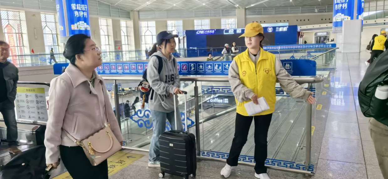 为传递温暖、鼓励更多同学参与志愿服务,共同营造文明、和谐、友爱的出行环境,国庆假期期间,铁道系“携手”志愿服务队招募14名志愿者,在呼和浩特东站、包头东站、鄂尔多斯站等八个车站开展“国庆出行路,志愿守护情”主题志愿服务活动。