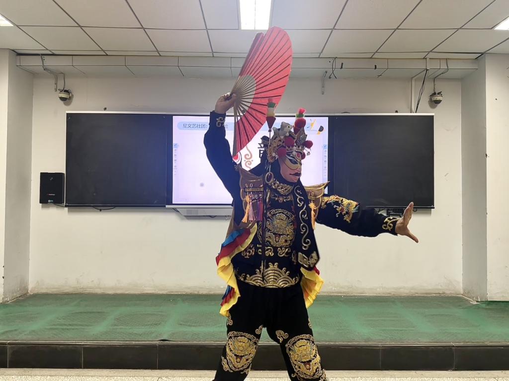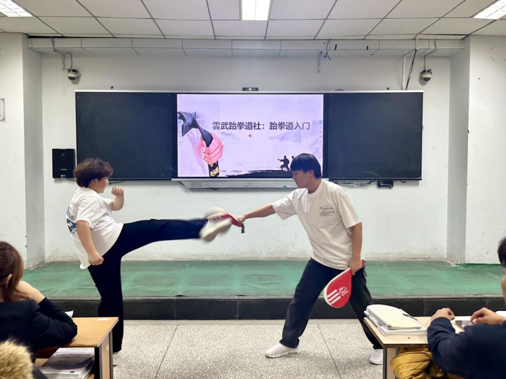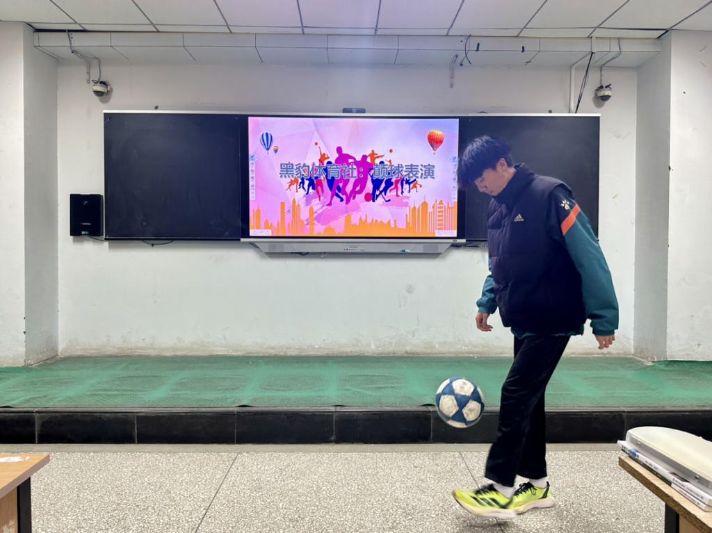 活动伊始,主持人以热情洋溢的开场白瞬间点燃现场气氛。随后,社团展示环节正式开启,五大社团依次亮相。其中,星文艺社张宏鹏同学倾情呈现韵尘变脸,鼓点起落间面谱瞬换五色,折扇翻覆中翎羽生风,一招一式干净利落,尽展非遗技艺之精妙;黑豹体育社程硕同学进行足球颠球展示,动作连贯稳定,节奏明快、姿态潇洒,尽显扎实功底与灵动球感;雲武跆拳道社籍羿、张靖凯、刘家宁等同学联合带来跆拳道表演,品势动作规范凌厉,腾空旋踢劲道十足,一招一式尽展“礼义、廉耻、忍耐、克己”的武道精神。最后,主持人对本次活动作简要总结,充分肯定了各社团的精彩表现,高度赞扬了同学们的积极参与。
