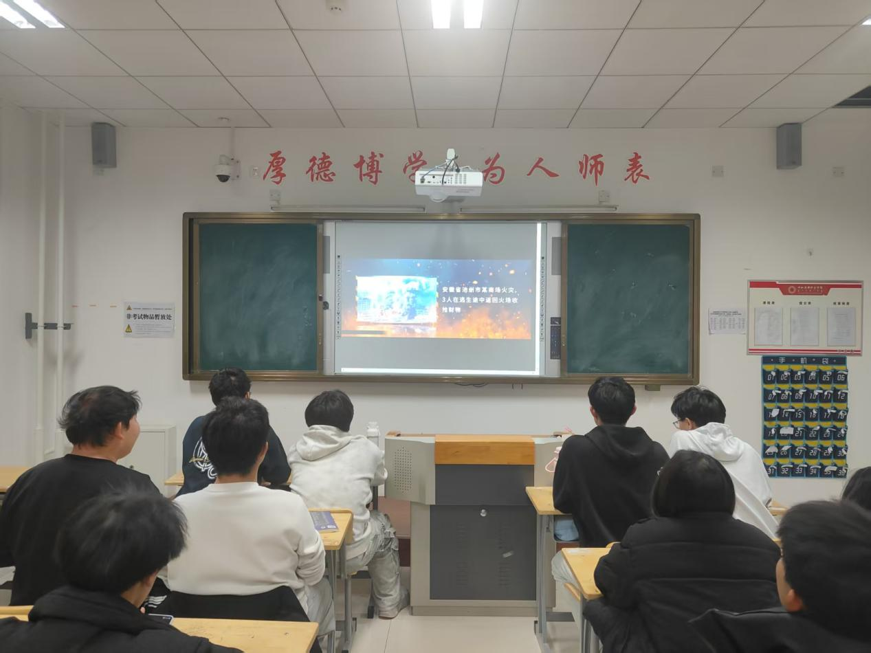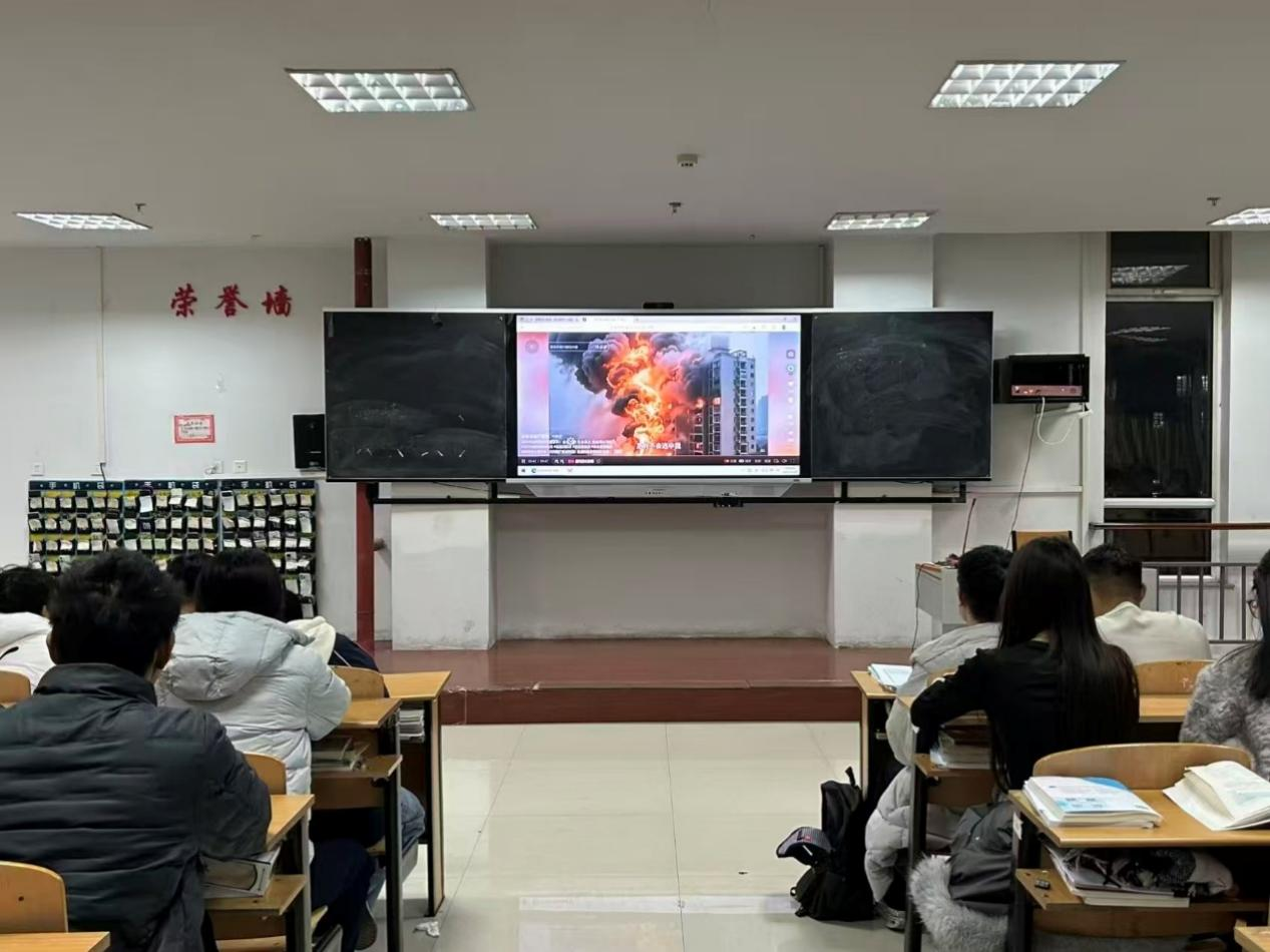 在活动期间,各班级利用晚自习时间,组织学生集中观看消防安全教育视频,系统学习消防知识,并掌握应急避险技能。视频内容涵盖了消防救援实操、安全用火规范与安全用电准则等实用知识。观看过程中,同学们神情专注、态度认真,通过真实案例了解火灾发生全过程,对火灾防范的具体要求有了更清晰的认识。同学们直观感受到火灾对人身安全的严重威胁,深刻认识到消除火灾隐患的重要性,牢固树立了“安全无小事”的防范意识,为后续落实安全防范措施奠定了坚实的思想基础。