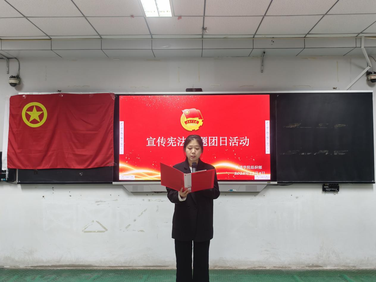为深入学习宪法知识,切实增强青年学生法治意识,引导广大青年学子自觉尊法学法守法用法,铁道学院于2025年12月9日在静学楼209教室组织开展了“弘扬宪法”主题团日活动。