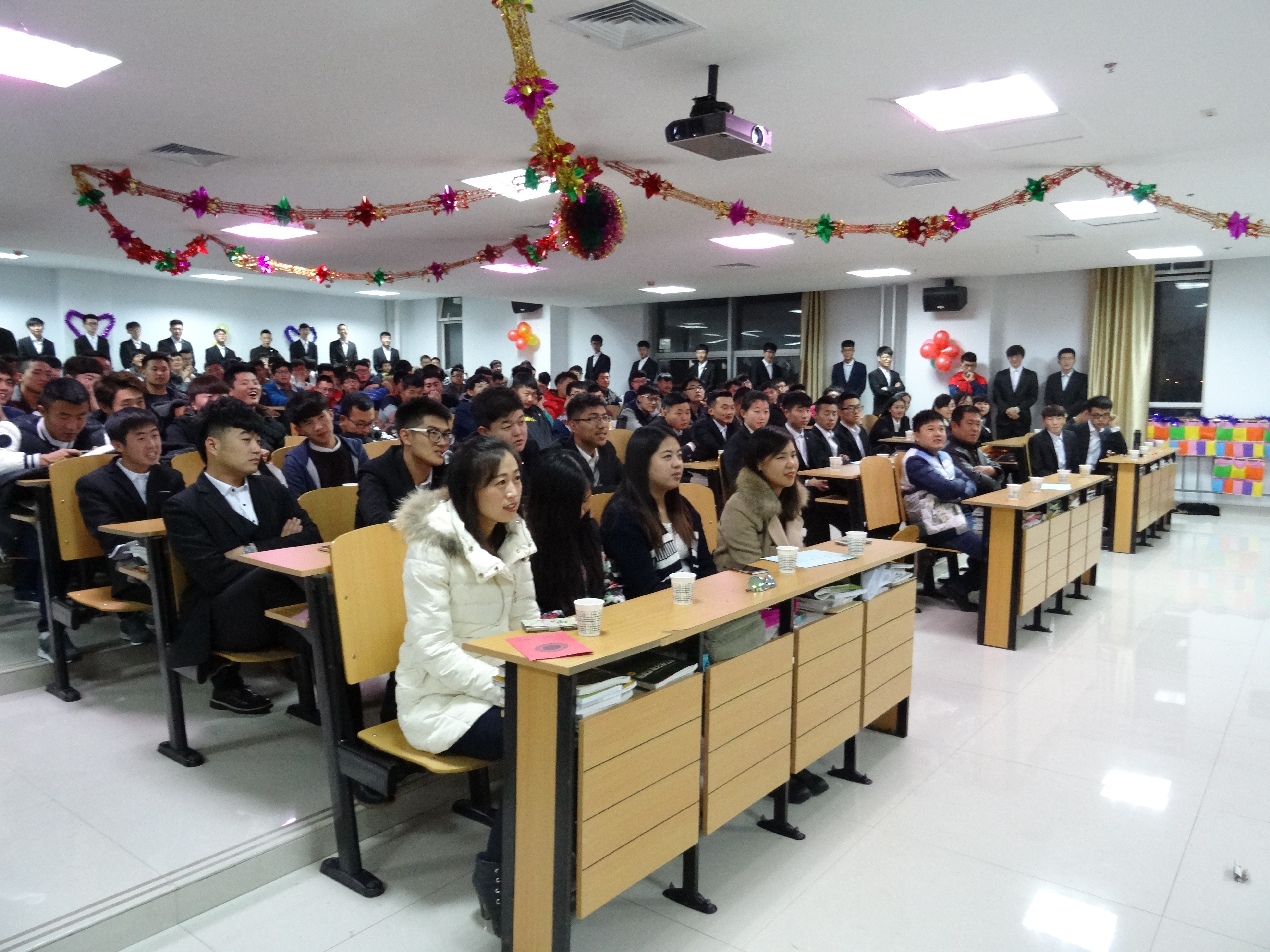 本次活动分为感恩父母,感恩老师,感恩同学三部分,活动内容精彩纷呈。感恩父母篇中一段《感恩父母》的小视频震撼了在场的每一个人的心灵,让大家更深刻的理解孝敬父母对于每一个人的意义;感恩老师篇中,谢婷老师满载浓浓师生情义为大家演唱了一首悠扬动人的歌曲;在感恩同学篇中,全体同学共同演绎了一曲《兄弟抱一下》,为大家展现出同窗之情的难能可贵。
