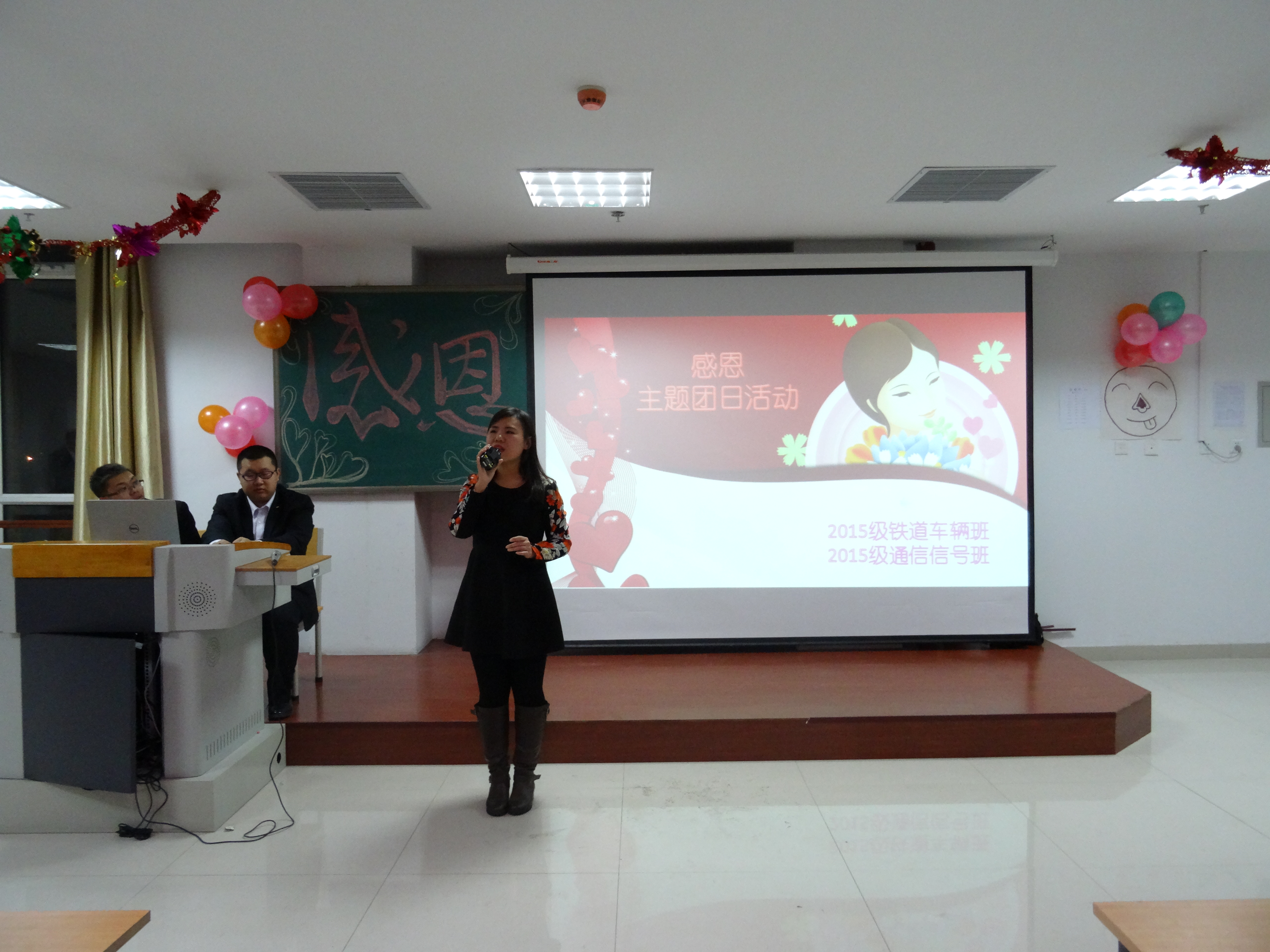 为弘扬中华民族的传统美德,让同学们深知感恩的重要性,铁道学院于2015年11月19日晚19时在图书馆六教室举办了以“感恩”为主题的团日活动。铁道学院学生科科长王振康、团总支书记兼学生科副科长王晓磊、全体辅导员老师、团总支学生会干部及铁道学院2015级通信信号专业及车辆专业全体学生参加本次活动。