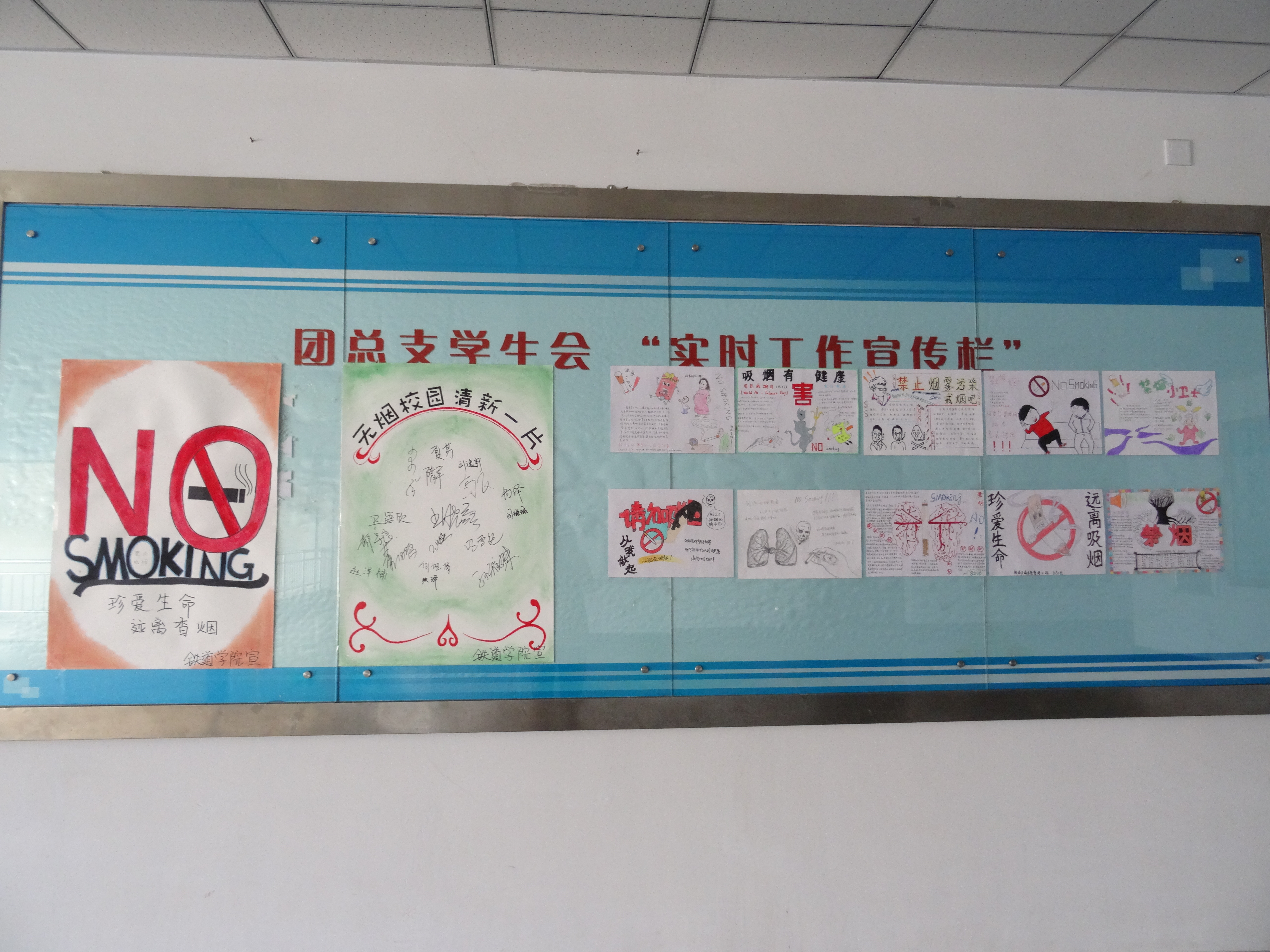 此次活动的开展是为了教育培养学生不吸烟,为我们的大学学习创造一个良好的无烟环境。为了更好的开展此次活动,铁道学院不仅在禁烟区域设置禁烟标识,还充分利用校园网络、宣传橱窗、电子屏幕、校园广播、微博微信等多种形式大力宣传吸烟的危害。让全体师生了解不吸烟不但有利于自己的身体健康,而且对于增强民族体质、建立良好的社会风尚都具有十分重要的意义。