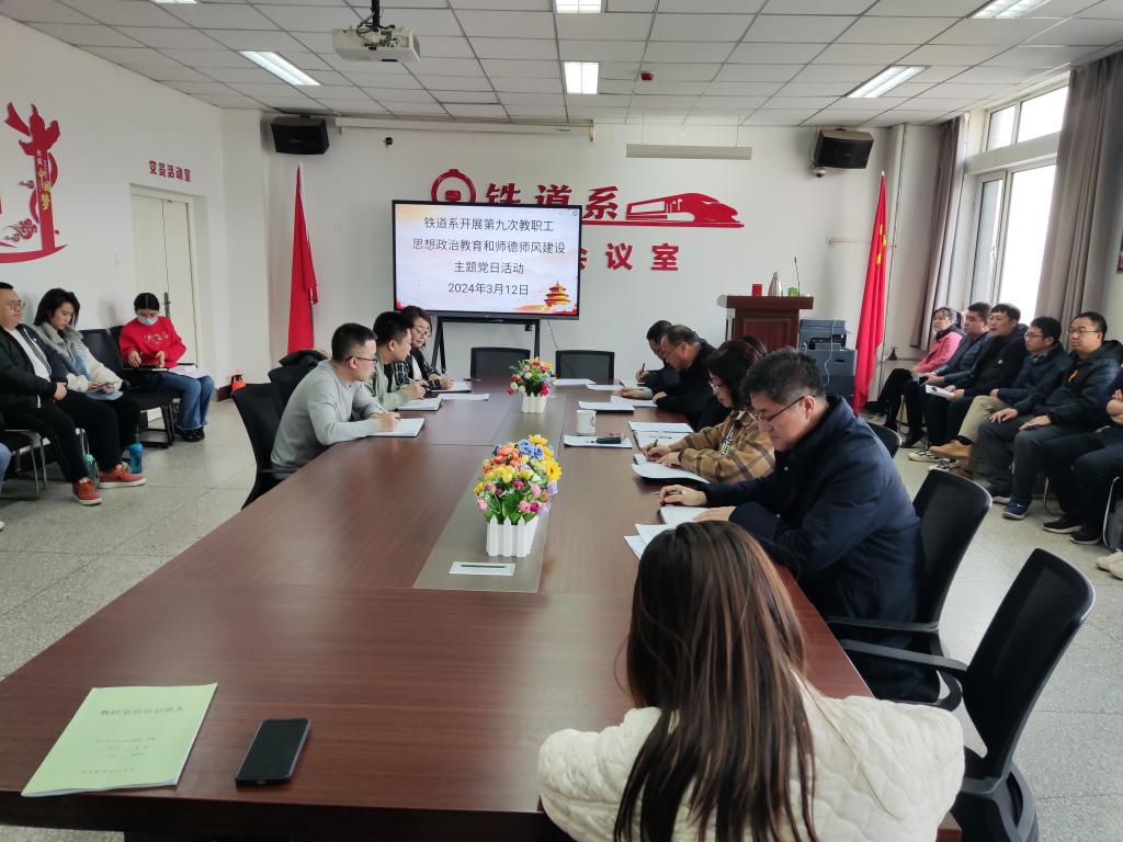 按照学院《关于组织开展第九次“教职工思想政治教育和师德师风建设”主题党日活动的通知》要求,2024年3月12日下午3点,铁道系在静学楼311会议室召开第九次“教职工思想政治教育和师德师风建设”主题党日活动。会议由铁道系副主任王建强主持,全体教职工参加了会议。