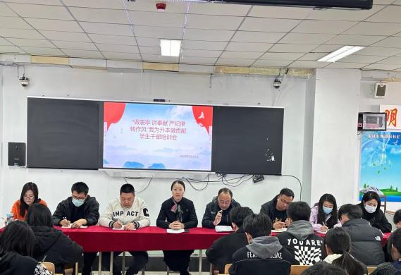 培训会上,王晓磊科长强调了对学生干部进行培训的必要性,并为学生干部规范职责点明要义。王建强副主任以纪律和安全问题为切入点,对近期学生干部工作进行总结,并对今后学生干部的工作提出更高要求。崔娜书记明确了当前我系学生管理工作的重点,提出要以宿舍精细化管理为抓手,提升我系学生自我管理能力,强调要加强学生干部之间的团结协作能力,共同助力我院升本工作的顺利开展。