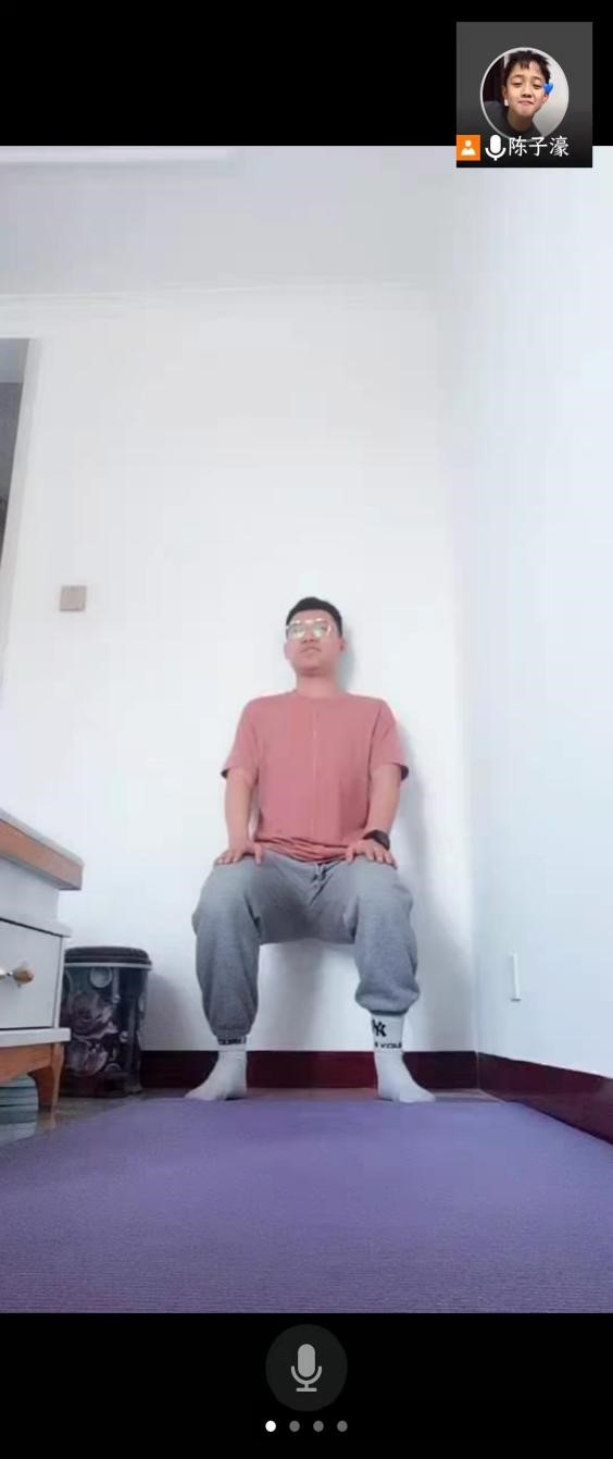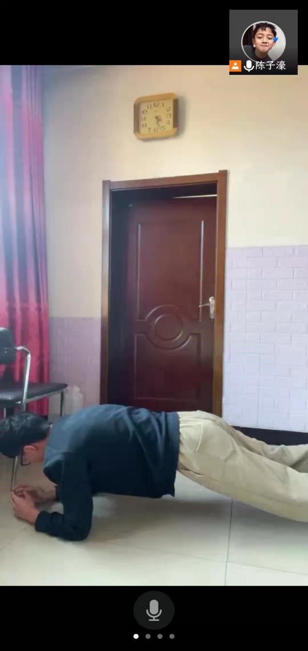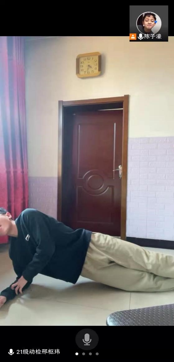 活动在播放心理健康教育短片中拉开序幕,紧接着主持人介绍活动的相关内容和流程。首先,主持人向同学们介绍了适度运动,可以使人的注意力转移,累积的不良情绪得到发泄,身心紧张程度得到松弛,对保持心理健康十分有益;随后,适当热身后,同学们在团总支学生会文体部长侯梓文的带领下,跟着一起做仰卧起坐、俯卧撑、靠墙半蹲等居家可操作性强的运动项目;最后,据心理健康专家介绍,居家网课期间更要注意休息,保证睡眠质量,充分的休息结合科学的运动,才能更好地保证身体各项机能的平衡,从而保持身心健康。