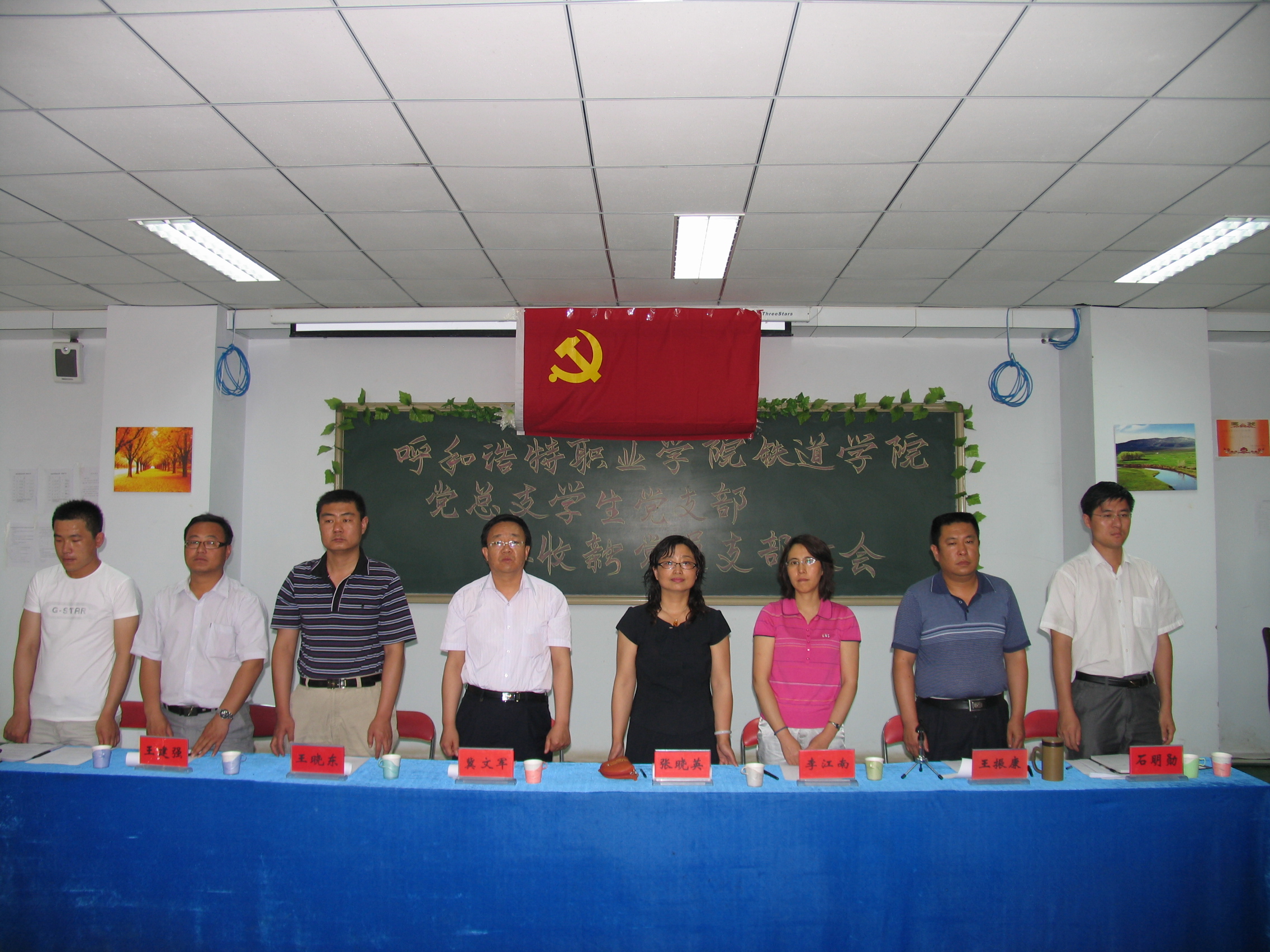 最后奏国歌,王振康老师宣布本次“铁道学院党总支学生党支部接收预备党员支部大会”圆满结束。