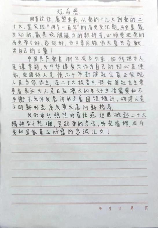 在全体师生收看二十大开幕会盛况后,大家纷纷表示,要坚持学在前、做在前,要深刻领会和把握大会报告的精神实质和丰富内涵,坚定信心、同心同德,埋头苦干、奋勇前进,相信党一定能用新的伟大奋斗创造新的伟业,为全面建设社会主义现代化国家、全面推进中华民族伟大复兴而团结奋斗。