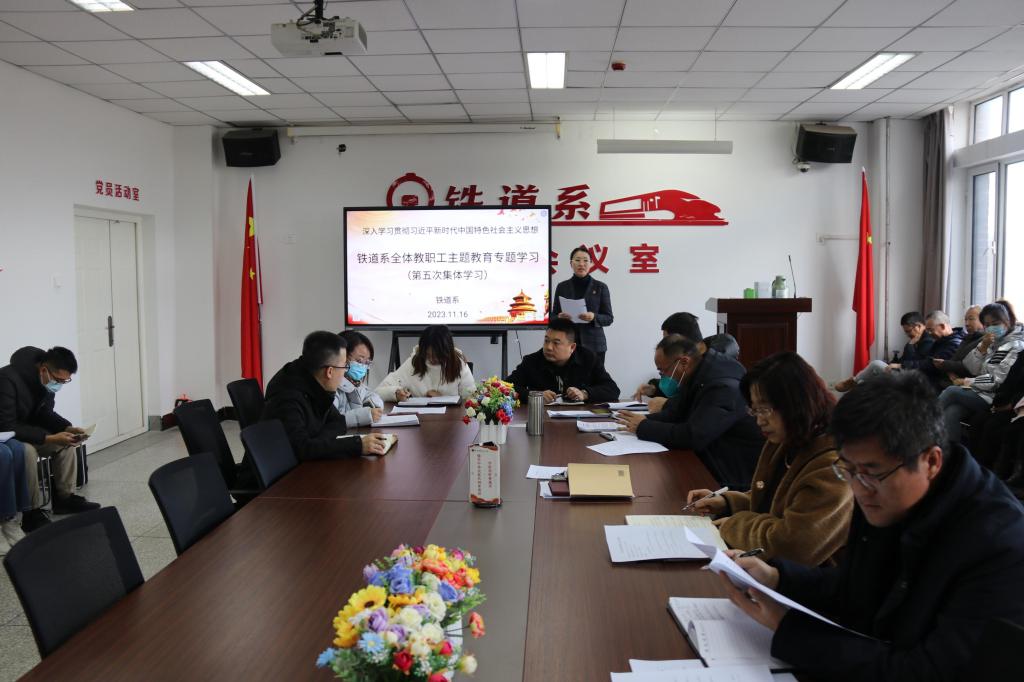为深入学习贯彻习近平新时代中国特色社会主义思想主题教育,2023年11月16日下午2点,铁道系在静学楼311会议室召开了铁道系全体教职工主题教育专题学习会议,铁道系党总支书记崔娜主持会议,全体教职工参加会议。