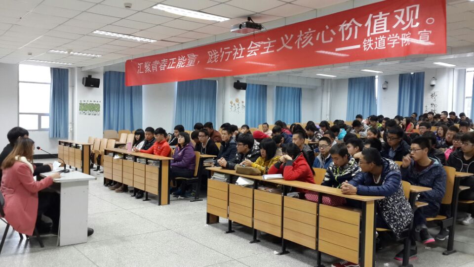 2014年11月18日,铁道学院在东校区北教学楼101教室举办了以“汇聚青春正能量,践行社会主义核心价值”为主题的座谈会。