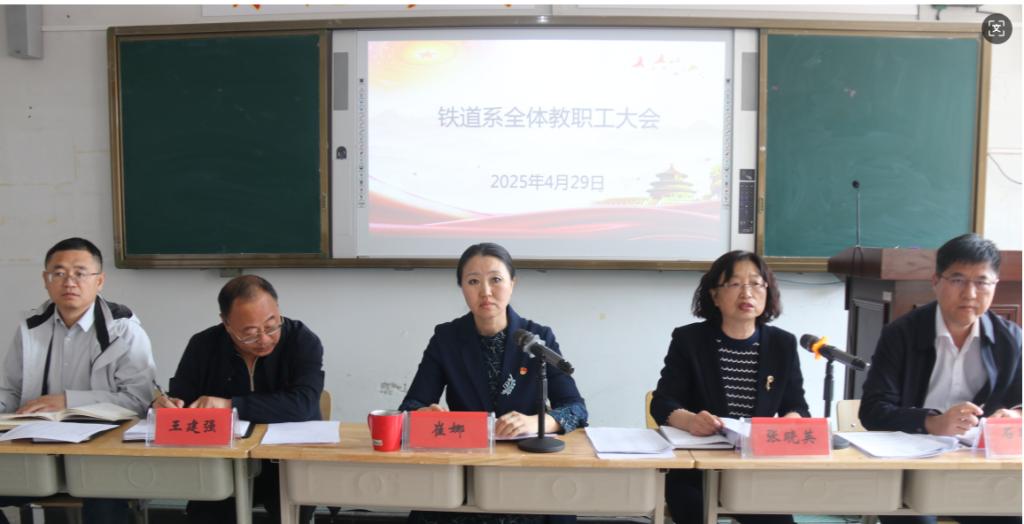 2025年4月29日,铁道系召开全体教职工大会,会议由系主任张晓英主持,全体教职工参会。会议聚焦系风学风建设、安全管理及实习工作等任务,明确下一阶段工作方向。
