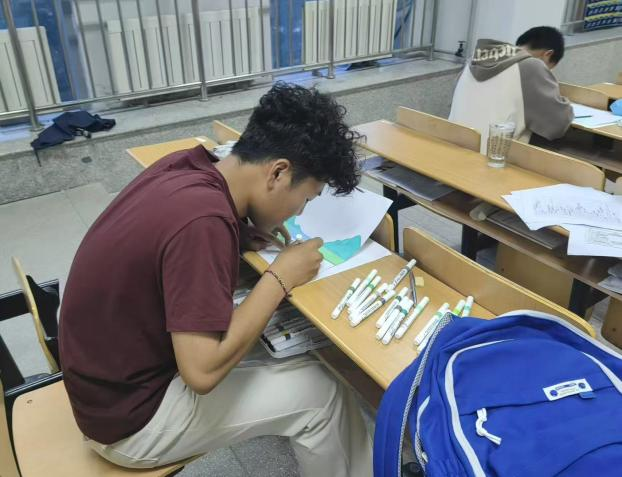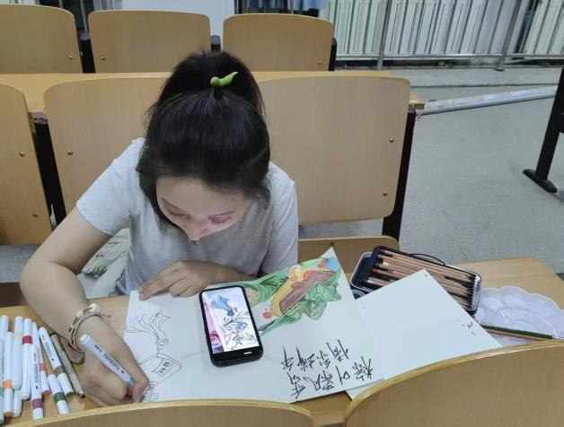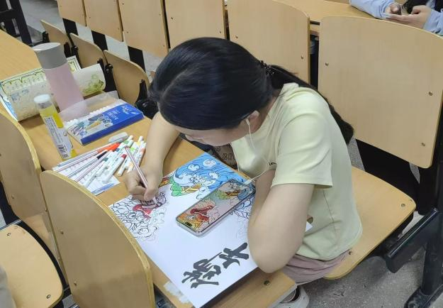 本次活动特别采取现场作画的方式。活动开始,同学们手中的笔尖在纸面上沙沙作响,一个个端午元素跃然纸上。有的同学以古朴淡雅的水墨风格,将屈原投江的典故用连环画形式呈现,配文讲述端午起源,展现历史厚重感;有的同学大胆运用撞色技巧,搭配龙舟、艾草、香囊等元素,创作出充满童趣的卡通作品。创作过程中,同学们不时互相交流绘画心得,分享对端午文化的理解,或是提供配色建议,或是分享构图思路,现场充斥着热烈融洽、互帮互助的浓厚气氛。在近一个半小时的创作过程中,教室里满是同学们认真的身影,浓厚的文化气息与艺术氛围交织融合,传统节日的魅力在一笔一画间得以生动诠释。经评选,本次活动共产生一等作品17份、二等作品27份、三等作品7份。
