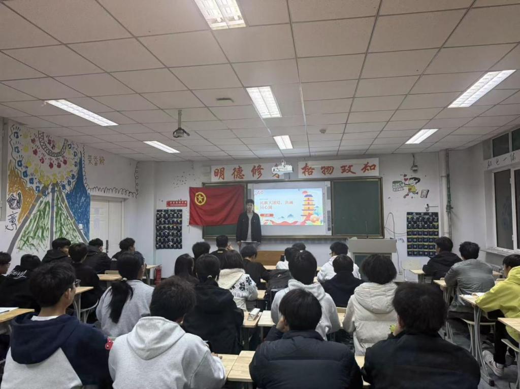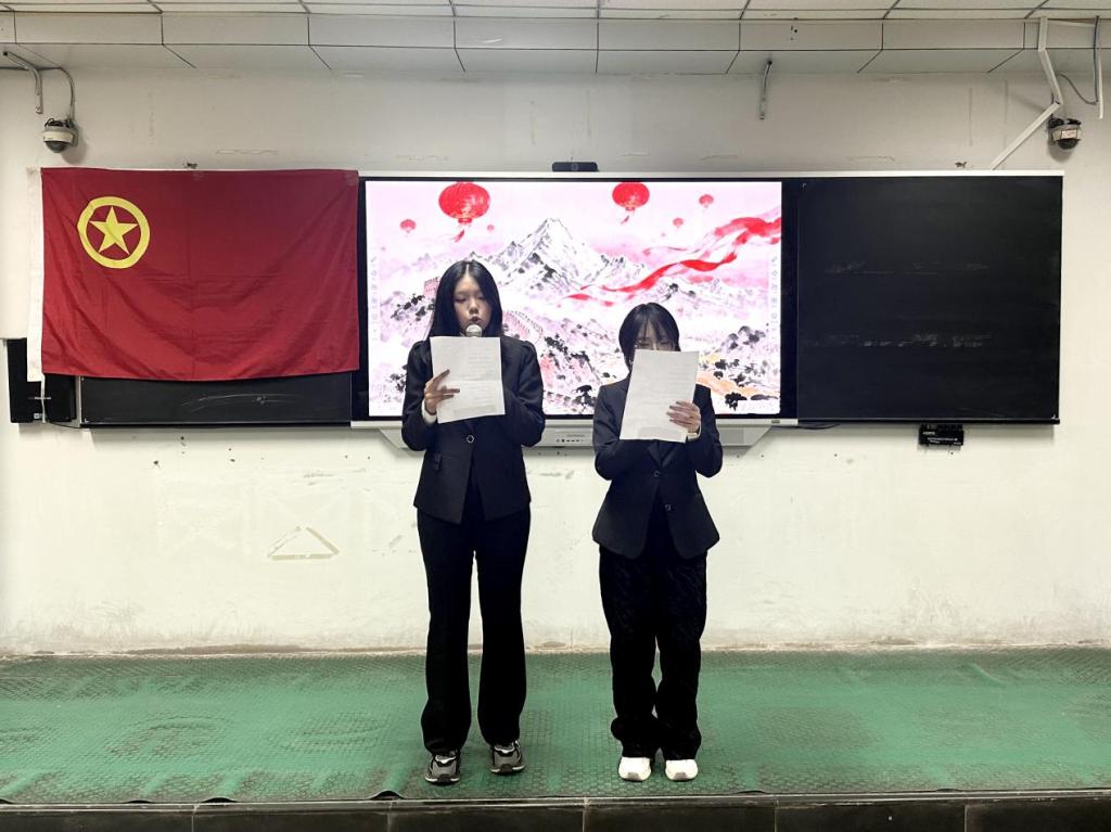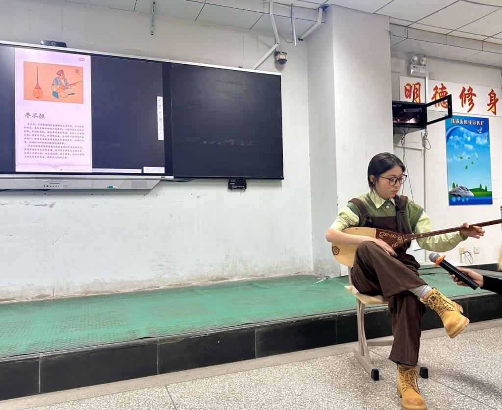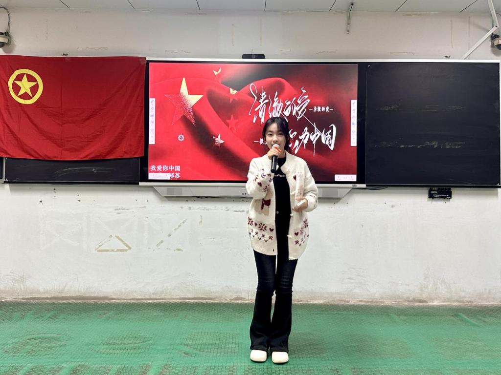 活动在激昂的《光荣啊,中国共青团》歌声中拉开帷幕。主持人首先带领同学们深入学习了党在民族团结方面的历史贡献,进一步增强了团员青年的中华民族共同体意识。随后,他从四个方面系统讲解了中国共产党推动内蒙古民族团结进步事业的坚实足迹与卓越成就,彰显了以铸牢中华民族共同体意识为主线,团结带领各族人民共同奋斗、共同繁荣发展的强大领导力和深厚为民情怀。文艺表演环节中,郑苏同学深情献唱《我爱你中国》,嘹亮的歌声饱含赤子之心,点燃了同学们的爱国热情。高沙尔同学的冬不拉演奏,以娴熟的技巧展现出哈萨克民族音乐的独特风韵和草原文化的壮美。王立文、崔依然同学朗诵的《石榴花开,同心筑梦》,让同学们深刻体会到各民族像石榴籽一样紧紧相拥,携手共筑中国梦的磅礴力量。