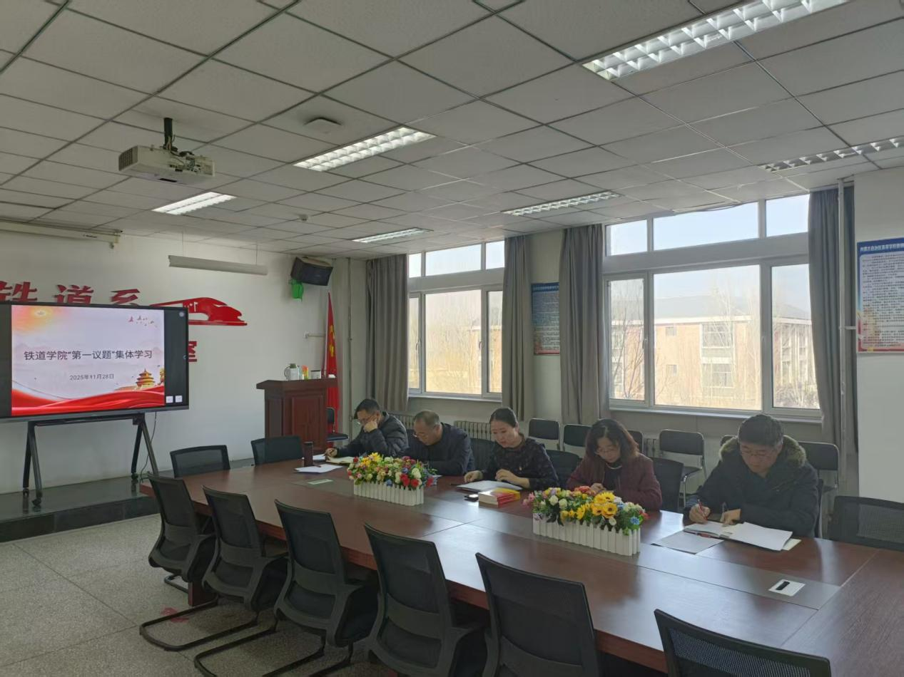 2025年11月28日,铁道学院召开党总支会议,开展“第一议题”专题学习,集体学习近期重要内容并研究部署党务相关工作。