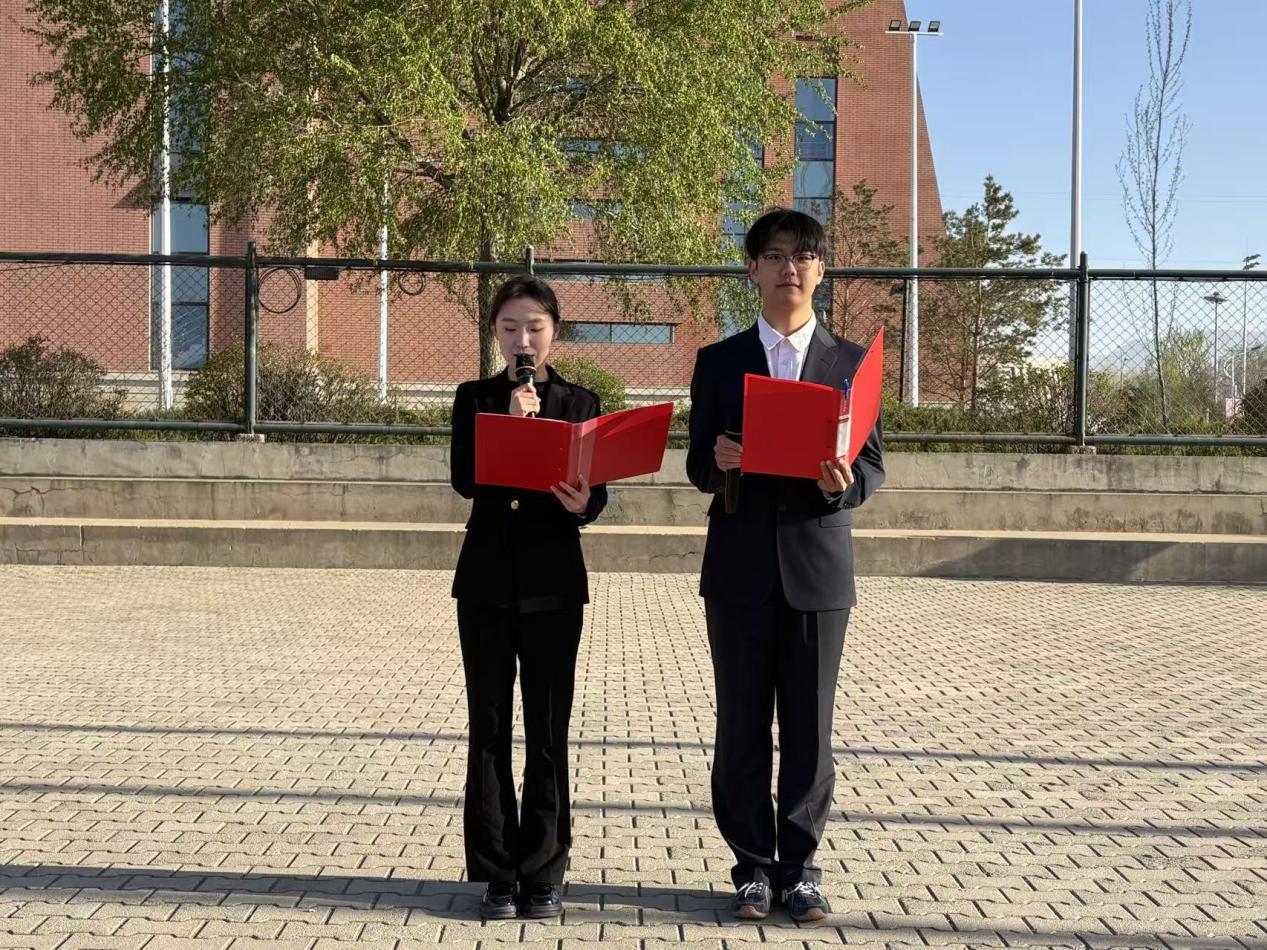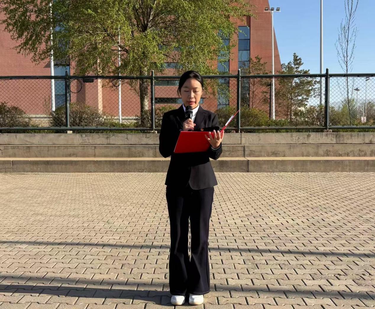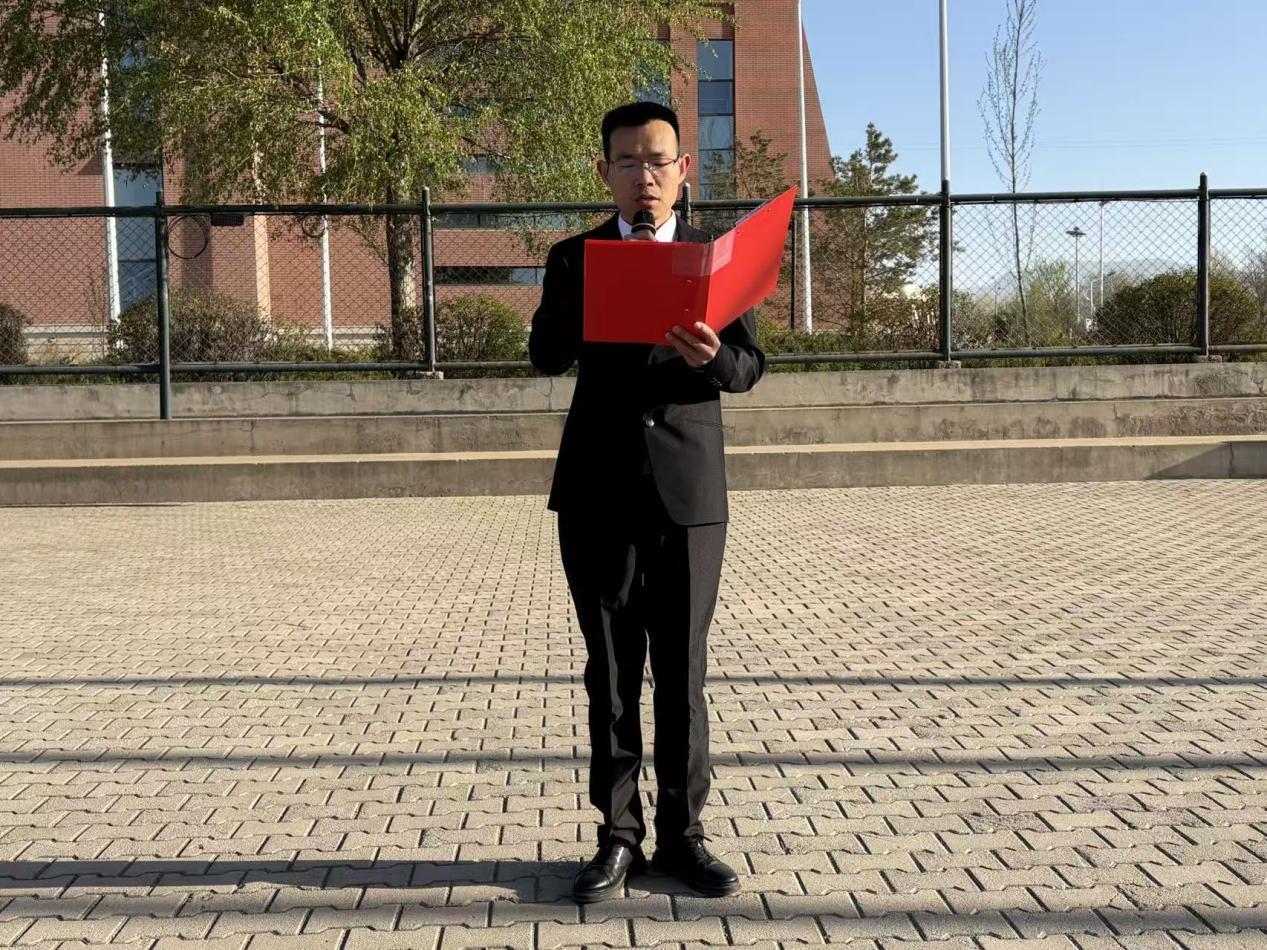 国旗护卫队迈着铿锵有力的步伐护送国旗入场。伴随着激昂的《义勇军进行曲》,升旗手振臂扬旗,鲜艳的五星红旗冉冉升起、迎风飘扬。全体师生庄严肃立,向国旗致以最崇高的敬意,表达对祖国的无限热爱与赤诚。教师代表崔军强老师作为教师代表发言,他以“工匠精神”为切入点,倡导同学们秉持专注严谨、精益求精的专业态度,厚植爱国情怀、深耕专业本领,努力成长为堪当重任的铁道栋梁,为铁路强国建设贡献青春力量。学生代表赵舒雅同学发言,她以“厚植爱国情怀,争做时代新人”为主题,回顾先辈爱国奉献之精神,号召全体同学立足“十五五”规划新起点,勤学善思、锤炼本领,将个人成长融入祖国发展大局,以实干担当践行爱国初心。最后,团总支书记周晓烨老师带领铁道学院全体师生庄严宣誓,进一步强化了师生的责任意识与使命担当。