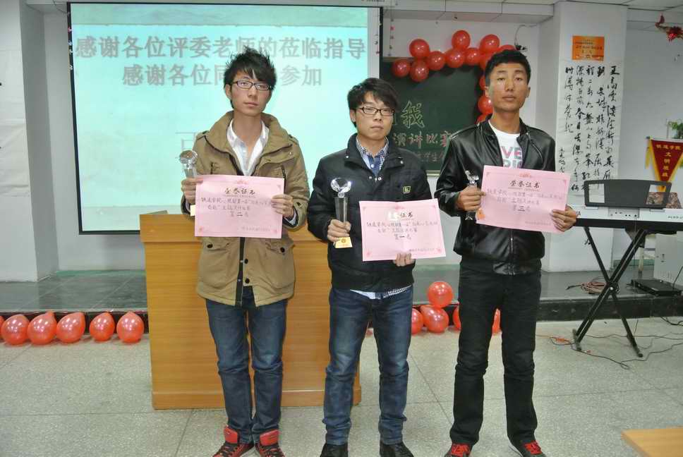 2012年11月29日19时30分以“沟通心灵找回自我”为主题的演讲比赛在东校区北教学楼101教室正式开始。