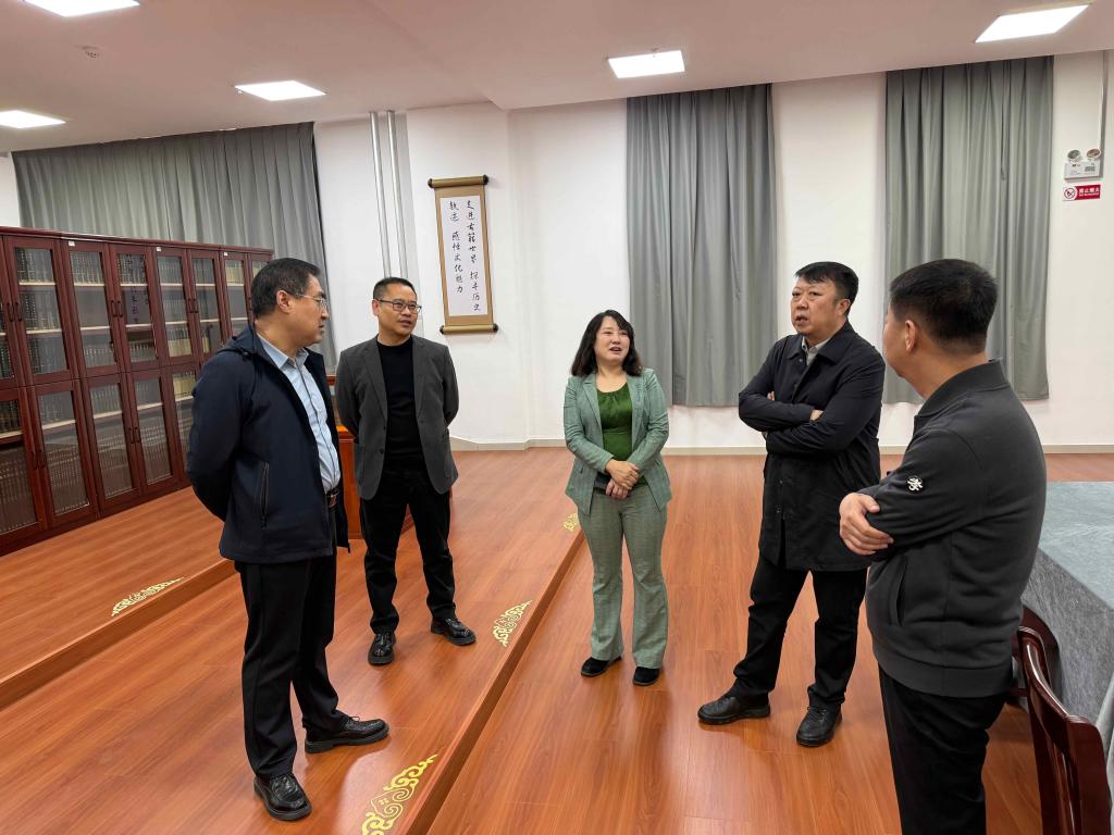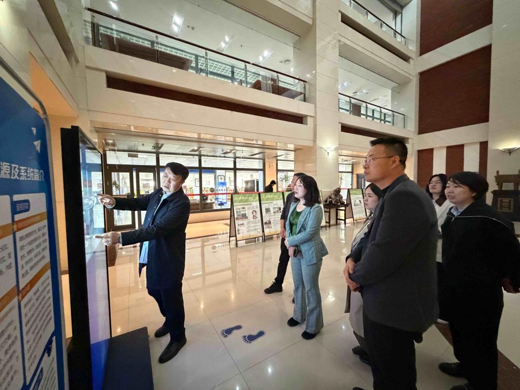 4月2日,中共内蒙古自治区委员会党校(内蒙古自治区行政学院)图书馆吴百梨瑛馆长、总务处刘威副处长等一行7人到我校图书馆参观调研。