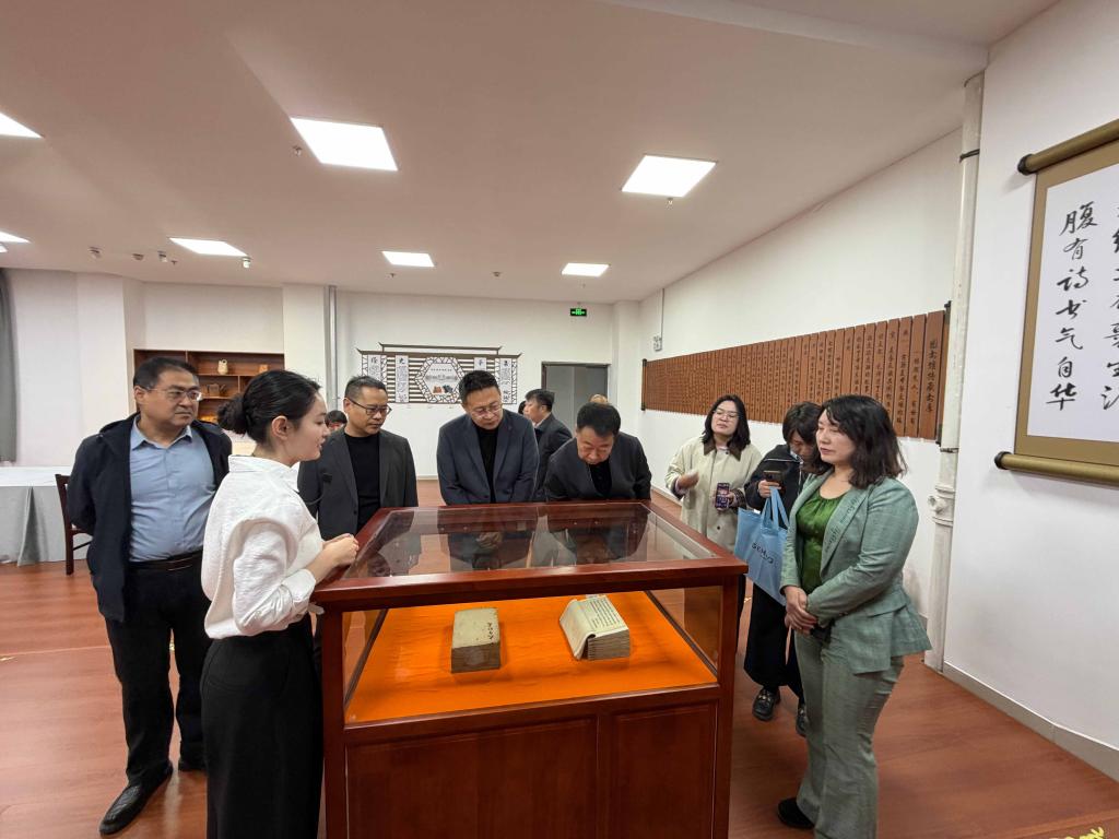 在学校图书馆馆长张国圣和副馆长包海鸿的引导下,吴百梨瑛馆长一行参观了图书馆特藏书库。经过百年沉淀积累,特藏书库存有大量的古籍线装书、古籍期刊、报刊等文献资料。双方围绕文献书籍的整理存放、机构设置、制度建设、文献资源优化与推广、学科及读者服务创新、职工队伍建设等方面开展交流。