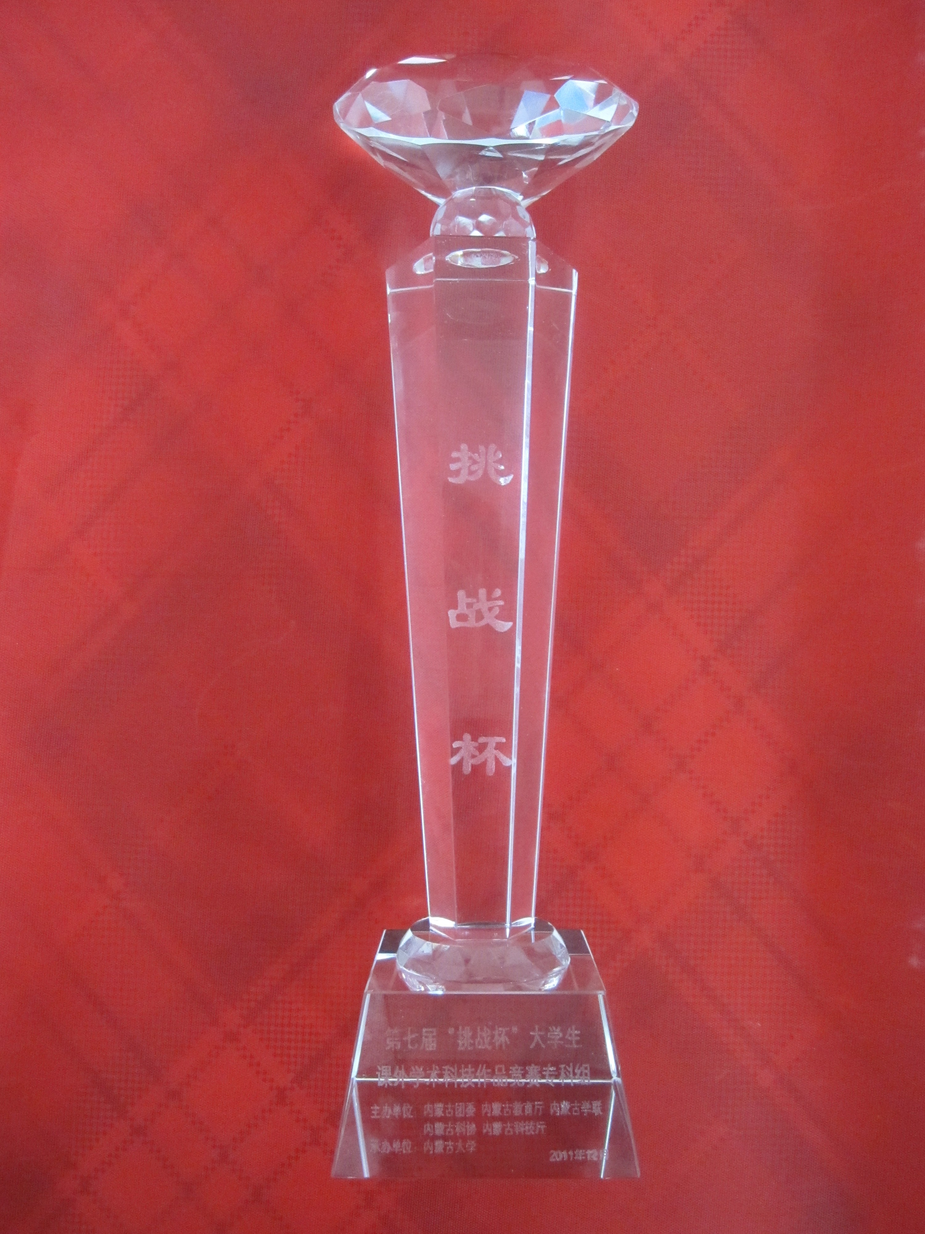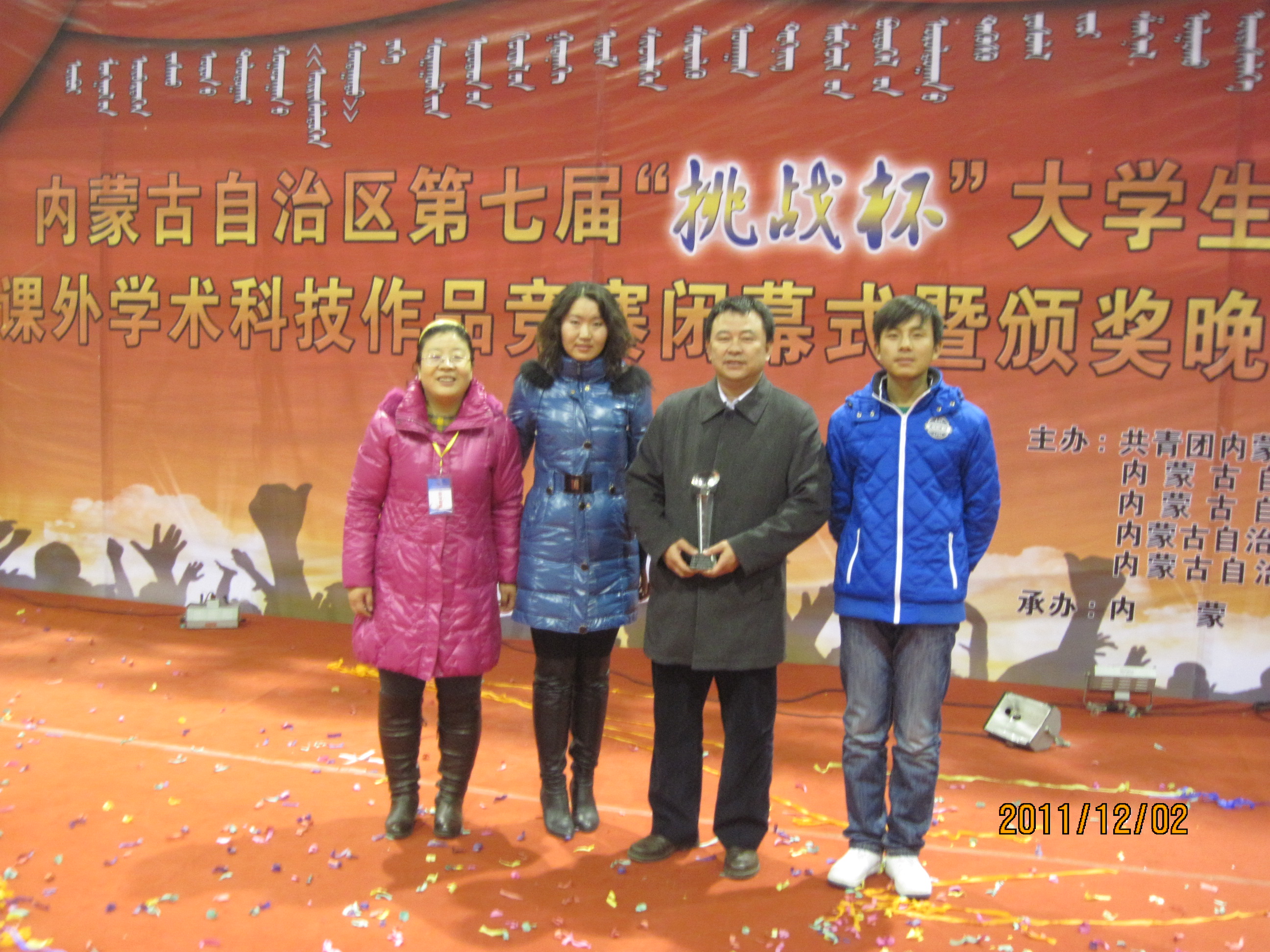 “挑战杯”大学生课外学术科技作品竞赛是由共青团中央、中国科协、教育部、全国学联和地方政府共同主办,国内著名大学、新闻媒体联合发起的一项具有导向性、示范性和群众性的全国竞赛活动。自1989年首届竞赛举办以来,始终坚持“崇尚科学、追求真知、勤奋学习、锐意创新、迎接挑战”的宗旨,在促进青年创新人才成长、深化高校素质教育、推动经济社会发展等方面发挥了积极作用,在广大高校乃至社会上产生了广泛而良好的影响,被誉为当代大学生科技创新的“奥林匹克”盛会。本次竞赛由共青团内蒙古自治区委员会、内蒙古教育厅、内蒙古科学技术协会、内蒙古学生联合会主办。自2011年4月启动以来,共收到来自内蒙古自治区20所高校推荐的科技发明制作类、自然科学类学术论文、哲学社会科学类社会调查报告和学术论文共452件作品参赛,其中294件作品入围复审。决赛最终评出一等奖15名、二等奖29名、三等奖88名。