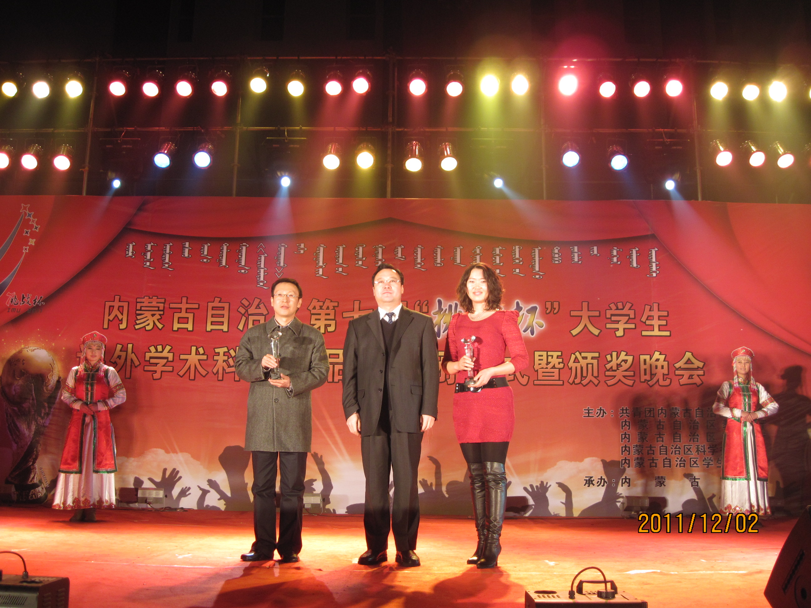 呼和浩特职业学院党委委员、院长助理、学生处处长张瑞斌,团委书记崔娜、指导教师邬改利及30余名参赛选手参加了开幕式,并观摩了来自全区各高校的优秀竞赛作品展。在当晚举行的颁奖仪式中,内蒙古大学和呼和浩特职业学院参赛作品数量多、质量优、总积分最高,分别捧得本、专科组“挑战杯”奖杯,共享“挑战杯”殊荣。