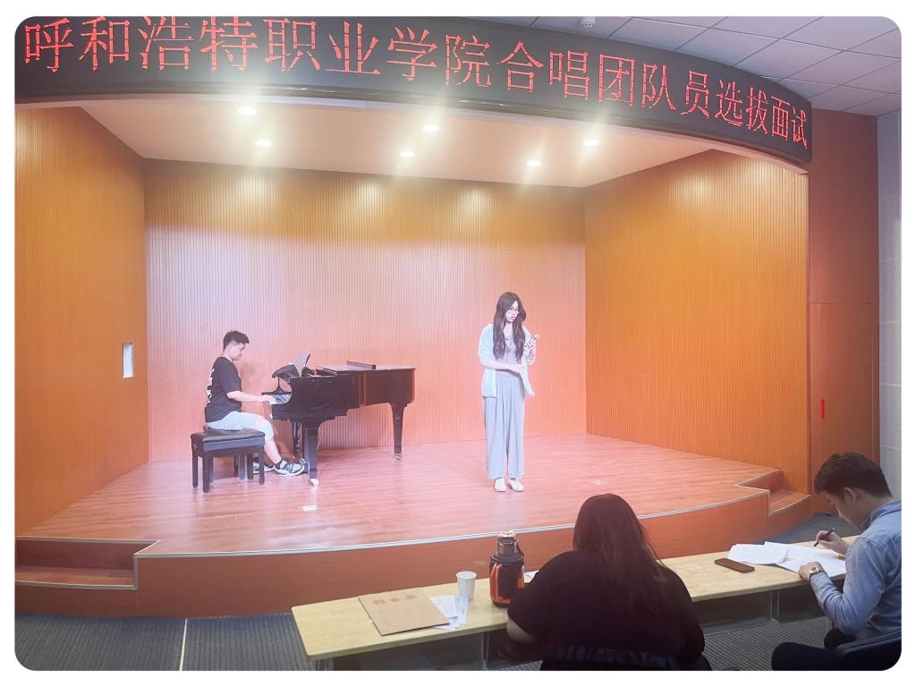 呼和浩特职业学院学生合唱团主要由我院各系部热爱合唱且具备一定声乐特长的非音乐类专业在校生构成,合唱团共67人,其中,机械与电力工程系8人、经济管理与法学系2人、铁道系15人、医药卫生系9人、师范部5人、化工与建筑系5人、国际教育部5人、人文与旅游系6人、美术系1人、计算机系11人。