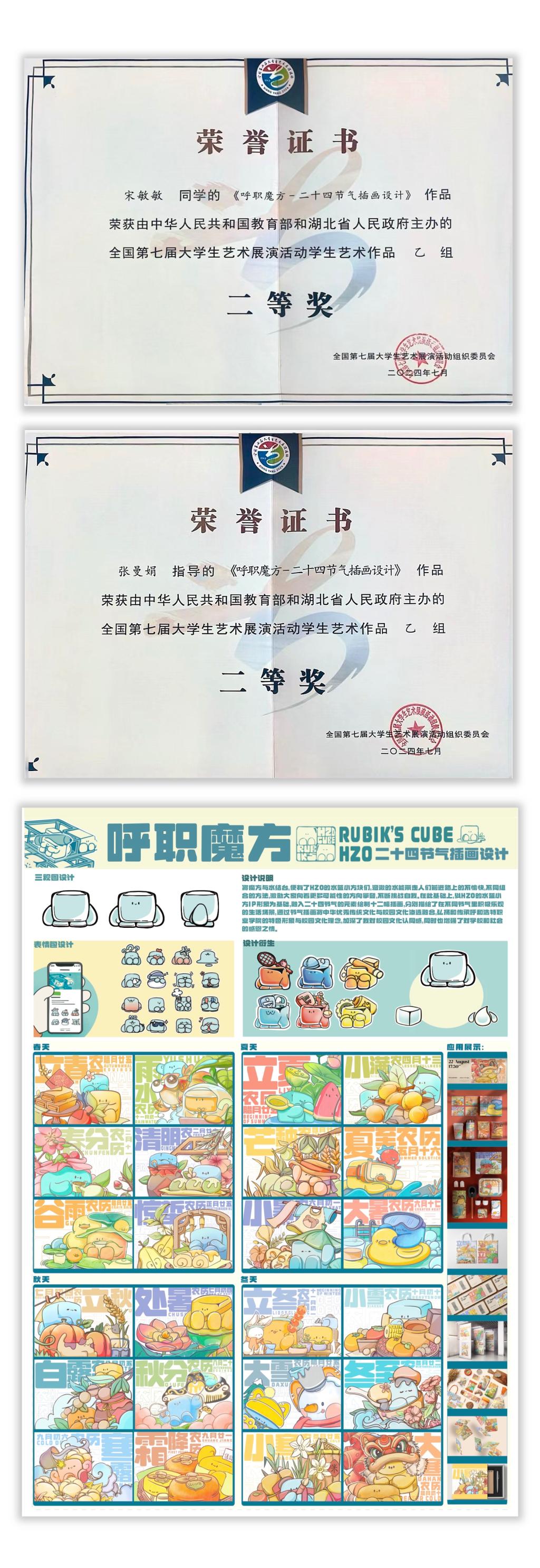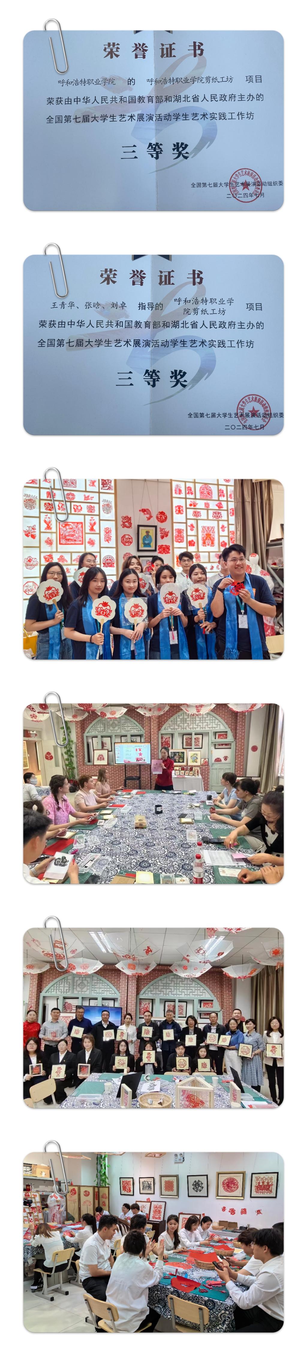 我院美术系宋敏敏同学、张曼娟指导的作品《呼职魔方——二十四节气插画设计》荣获艺术作品乙组二等奖,王青华、张晗、刘卓指导的《剪纸工坊》荣获艺术实践工作坊三等奖。