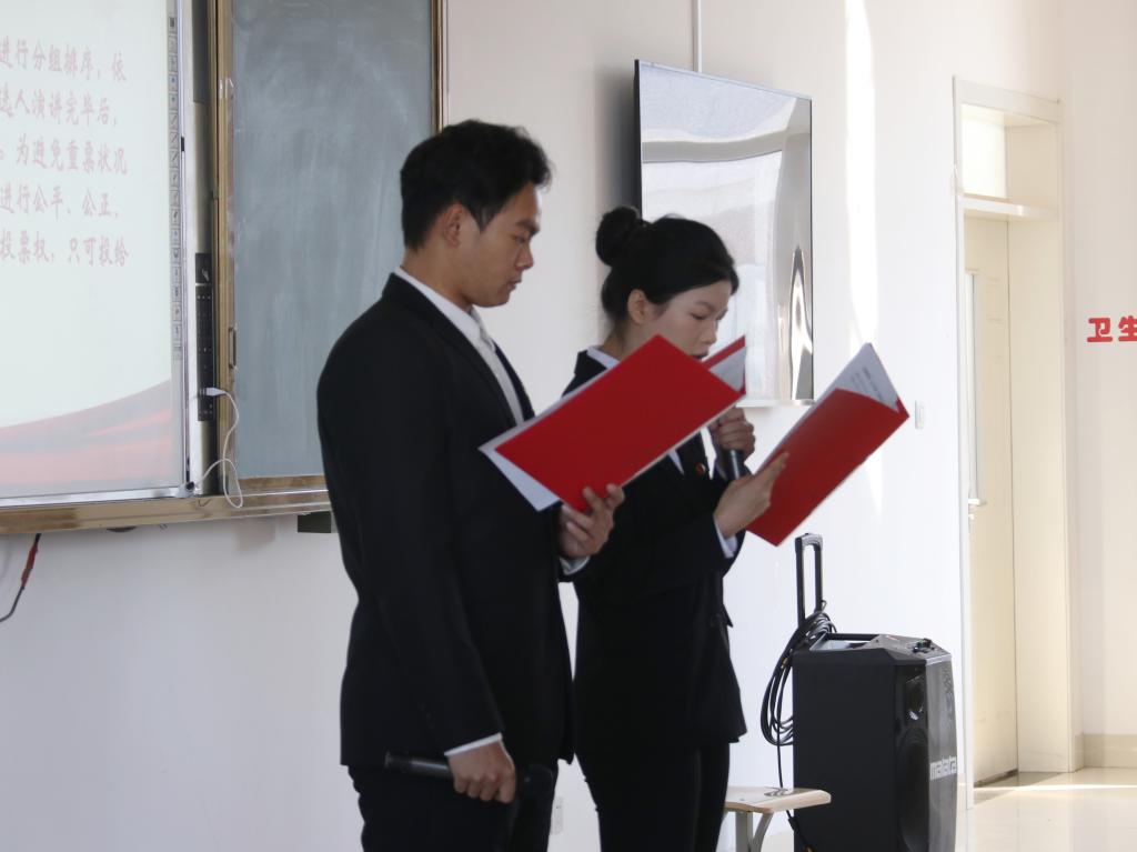 仪式在全体齐唱《光荣啊,中国共青团》的歌声中拉开序幕。主持人新媒体何一凡、刘鑫淼宣读了换届大会竞选规则和投票须知。接下来,每位竞选者都围绕自我介绍、岗位认知、工作展望等方面依次上台进行述职演讲,既讲出了对未来工作的信心和期待,也从他们身上看到了对接任这份工作的态度和决心。
