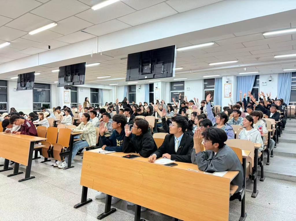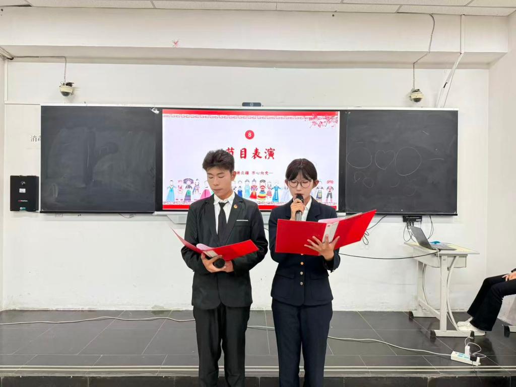活动在激昂的团歌声中拉开序幕。首先同学们在主持人的带领下,集体学习“四个与共”“五个认同”“四对关系”等核心内容。故事分享环节,“三下乡帮扶团”“库尔班远途赴京”的故事深化了大家对民族团结思想的领悟;内蒙古“草原母亲都贵玛”的事迹让同学们感受到北疆大爱;内蒙古达拉特旗非遗剪纸传承故事的分享,让榜样力量与奋斗身影交相辉映。随后的知识答题环节,同学们在互动中深入了解民族团结事业发展现状深化对民族政策的理解。