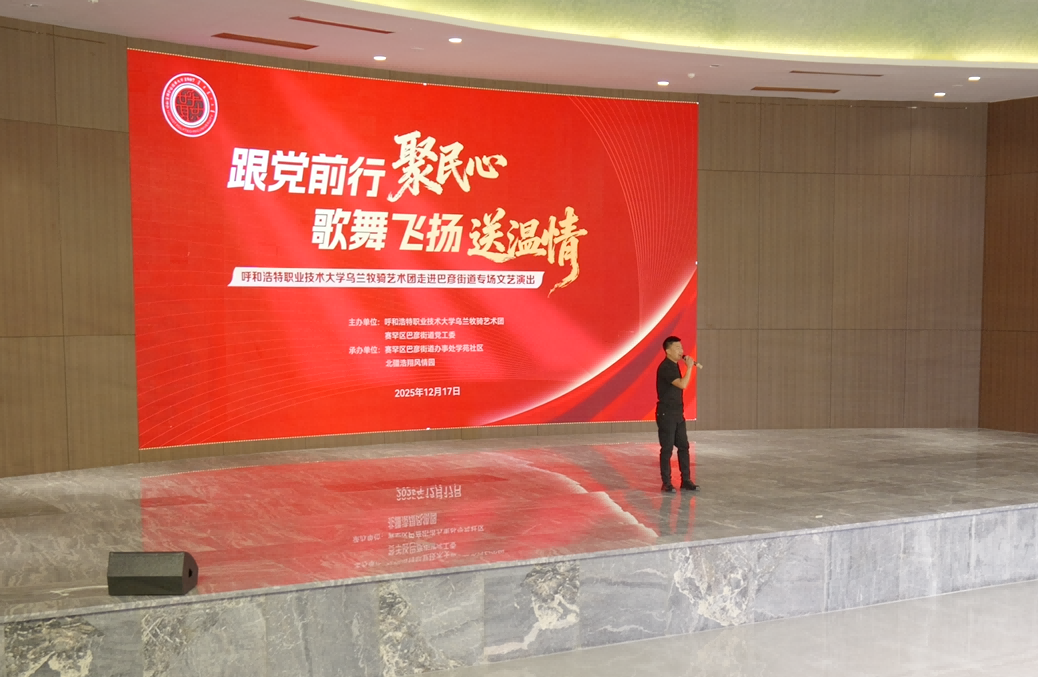 12月17日,我校乌兰牧骑艺术团联合赛罕区巴彦街道党工委举办“跟党前行聚民心,歌舞飞扬送温情”专场惠民演出。校团委副书记贾智慧带队参与,活动由学苑社区、北疆浩翔风情园承办,是我校深化校地文化共建、落实惠民服务的生动实践。