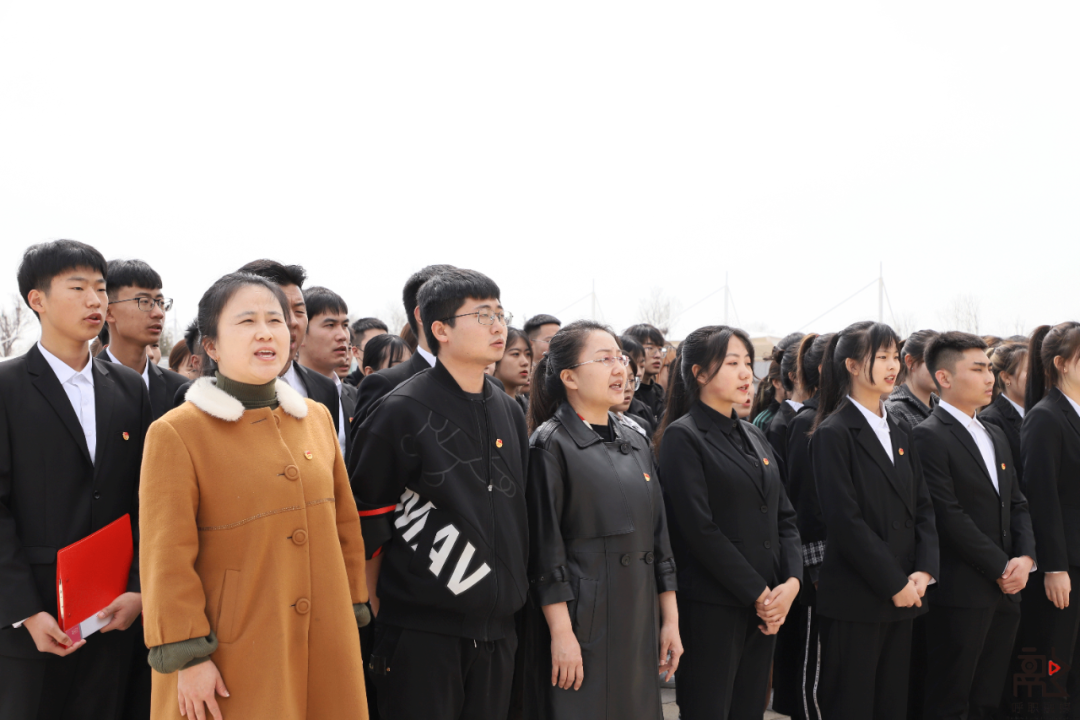 随后,学生代表李云奇进行国旗下的演讲,作为新时代的青年,我们是幸运的也是幸福。我们应珍惜这来之不易的幸福生活,继承革命先烈的遗志,不惧风雨,勇挑重担,让青春在党和人民最需要的地方绽放绚丽之花。团员代表姚帅臣同学带领全体师生重温入团誓词。