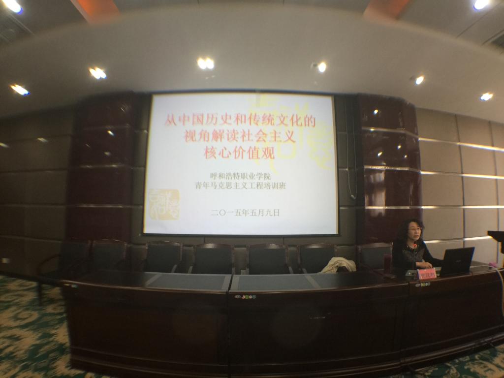5月9日,呼和浩特职业学院第五期“学生业余党校”暨“青年马克思主义者培养工程”培训班在东校区5号会议室举办了社会主义核心价值观专题讲座。本次讲座由学院党政办公室主任贾跃琴副教授以“从中国历史和传统文化的视角解读社会主义核心价值观”为主题进行讲授。