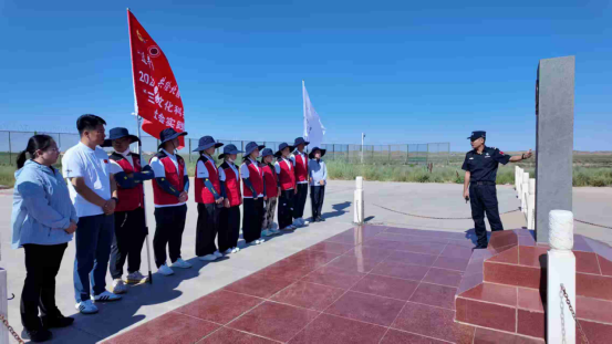 7月26日,呼和浩特职业技术大学“追寻榜样足迹 共绘北疆新篇”实践团先后走进甘其毛都口岸中蒙703号界碑、甘其毛都出入境边防检查站、甘其毛都边境派出所及乌拉特中旗国防教育实训基地,将理论与实践结合,在实地参观、边境巡逻和实践调研中,深刻感悟国防力量与红色精神。