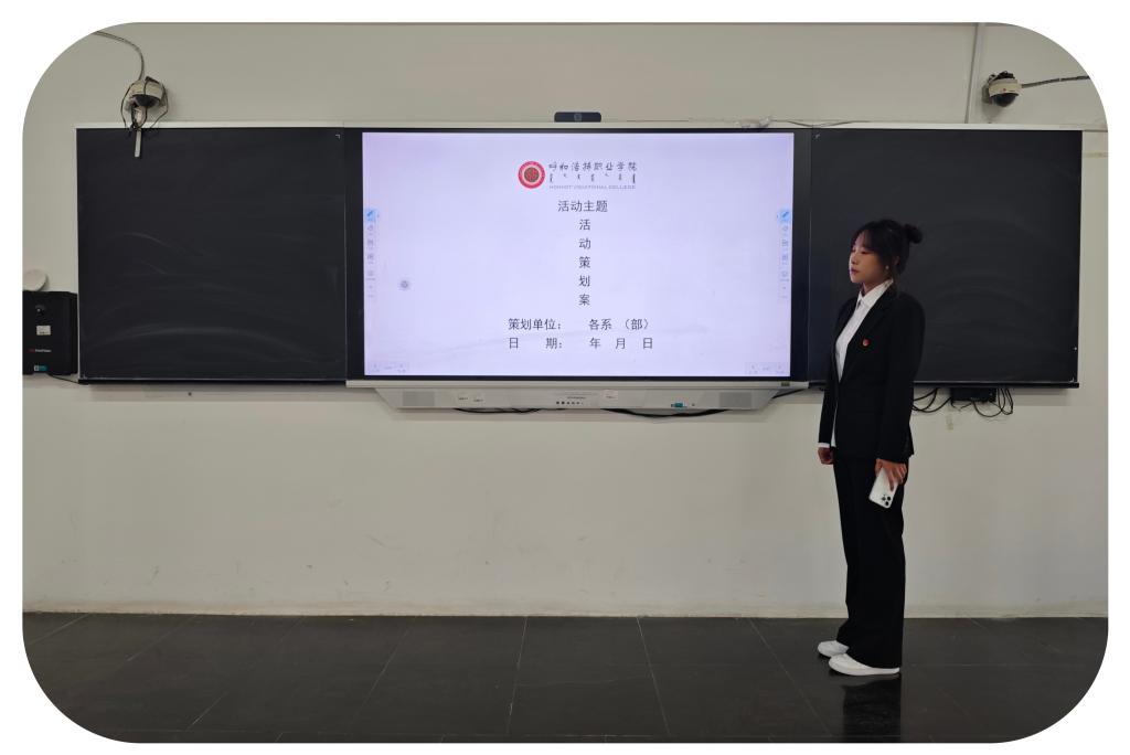 在《团日活动策划》环节,团干部冯佳琪以“增强文化自信”主题团日活动为例,分享运用情景模拟、互动游戏等创新形式提升活动吸引力与参与度的策划经验。