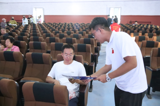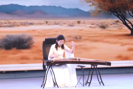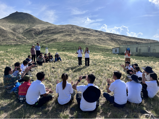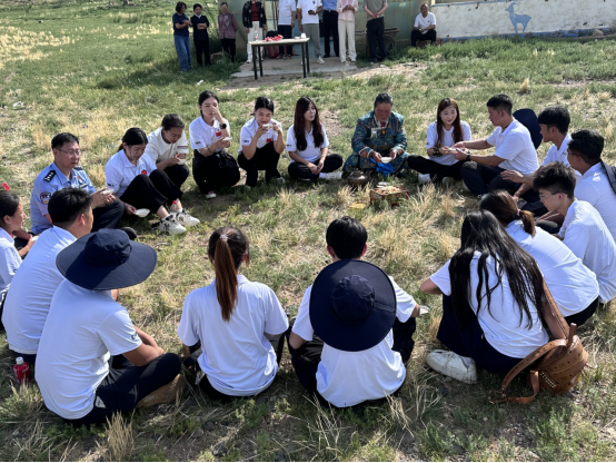 “走进牧户”调研访谈环节,实践团分组深入当地牧民家中,与牧民围坐在一起,详细了解他们的生产生活、民俗文化与发展需求。从传统奶制品制作工艺到现代畜牧业转型,从民族文化传承到乡村振兴成果,同学们认真记录,积极思考,为后续撰写调研报告积累丰富素材。同时,实践团还在潮格温都尔镇影剧院为群众和民警奉上一场精彩纷呈的文艺演出:古筝琴声悠扬婉转,说唱节目节奏铿锵,诗歌朗诵饱含深情,合唱旋律动人心房。现场气氛热烈,掌声不断,各民族同胞在艺术的共鸣里拉近距离,让团结之花在互动中愈发绚烂,也让情感的交融更加深厚。