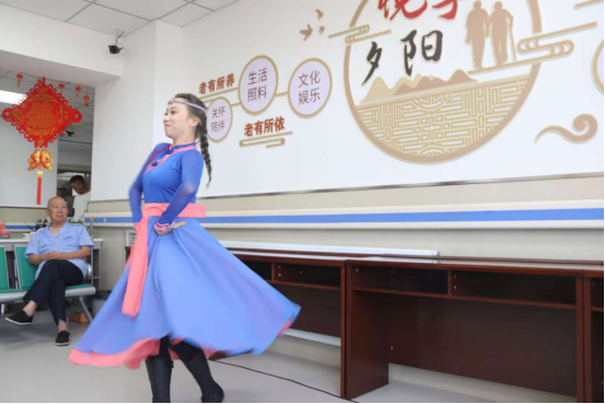 荣军养老康健院的老人们大多是退伍军人,日常生活宁静却鲜有文化活动,精神生活相对单调。实践团乌兰牧骑艺术团的到来,为这里注入了久违的热闹。杨雅然的《春风十万里》《敕勒歌》唱出草原情怀,高敏的火不思独奏《奔驼》《阿其图》奏响民族韵律,贾志敏的蒙古族舞蹈《碗晴》、傣族舞蹈《金孔雀》舞出青春活力,贾智慧老师的《呼伦贝尔大草原》更勾起老人们的草原记忆。
