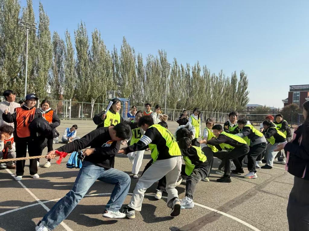 活动以团队竞赛形式展开:首先通过“成语接龙”环节,考验各小组代表的思维敏捷度与词汇储备,展现学生文化素养;随后“萝卜蹲”游戏以轻松氛围增进同学了解、拉近彼此距离;最终“拔河比赛”将活动推向高潮,各组成员齐心协作,诠释团结真谛。