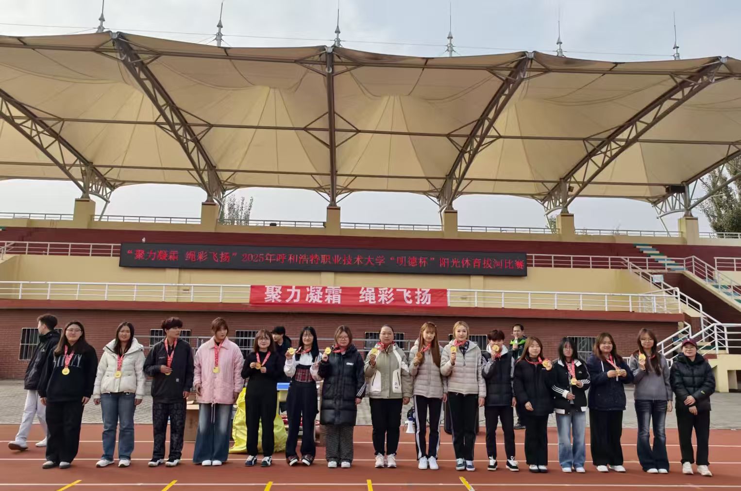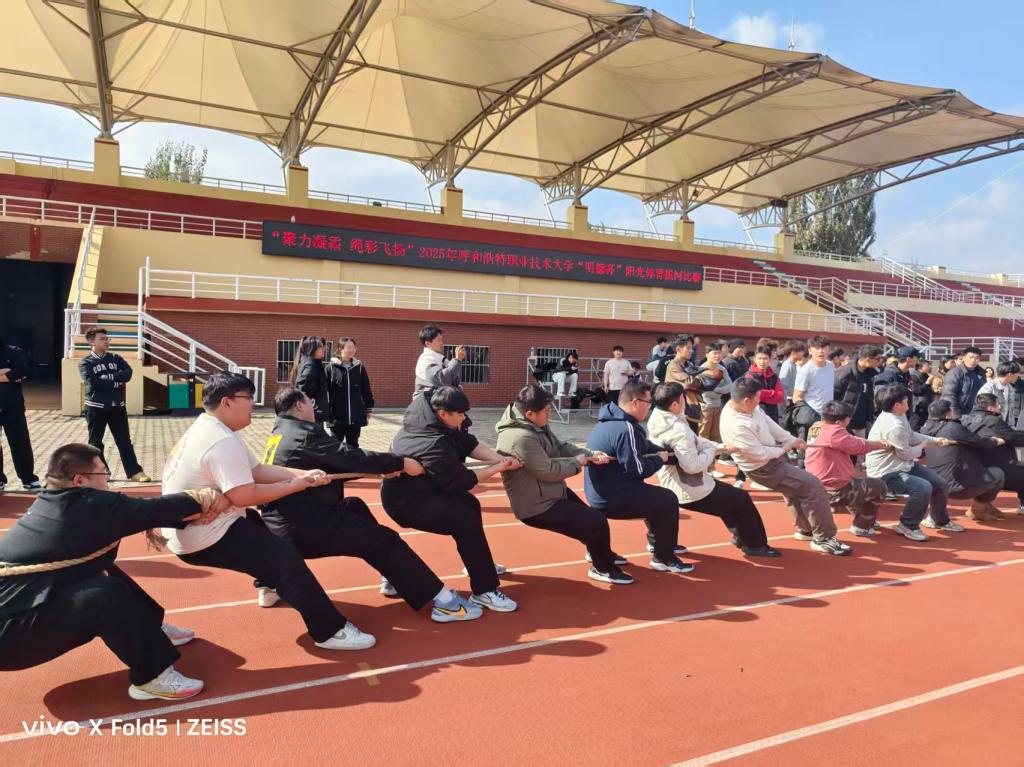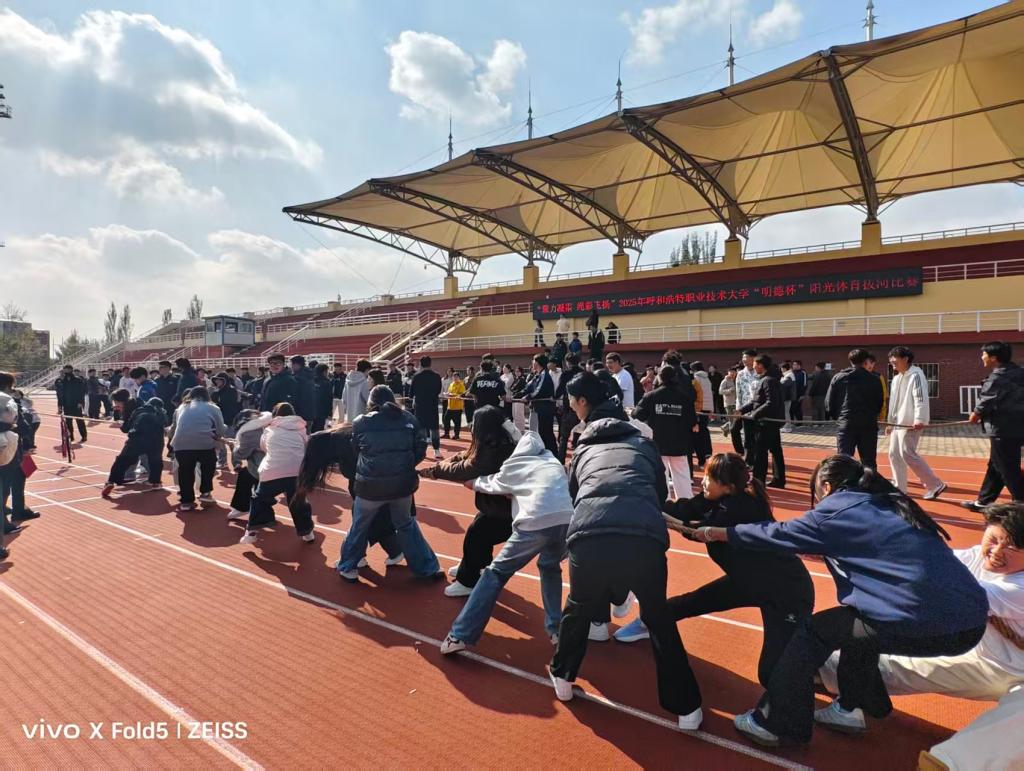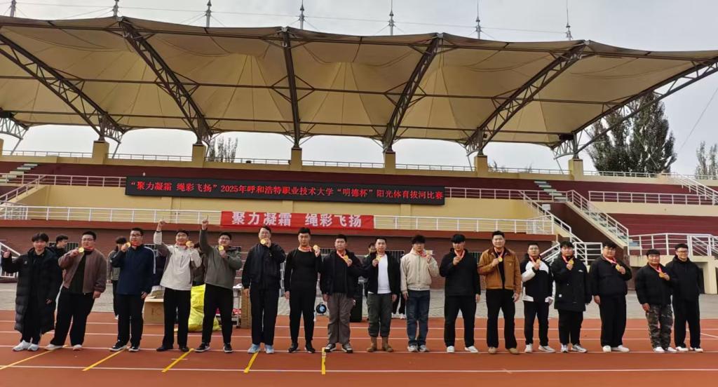 时逢霜降,气肃而凝,万物敛藏间更显拼搏之劲。为牢牢把握学校课余体育活动面向全体学生的基本定位,大力开展普及性、趣味性、集体性体育项目,培养大学生热爱体育、崇尚运动的健康观念,形成良好的锻炼习惯,促使学生在体育锻炼中增强体质,磨练意志,健全人格。10月23日和10月24日,体育部面向全院学生组织开展了以“聚力凝霜 绳彩飞扬”为主题的2025-2026学年度呼和浩特职业技术大学“明德杯”阳光体育系列活动——拔河比赛。霜降虽有寒意,却挡不住学子热情,此次拔河比赛受到了各系部、各年级学生的广泛关注和支持,共吸引300余名在校生参赛。