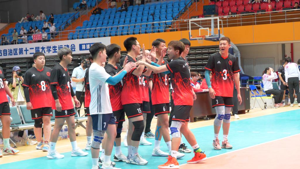校园组比赛分两个阶段进行,第一阶段采用小组单循环赛决出出线队伍,第二阶段采用交叉淘汰制决出名次。5月25日,呼职男排首场小组赛以3-0取得了本次比赛的开门红。在接下来的小组赛中,同学们快速适应比赛节奏,场上表现渐入佳境,以小组赛全胜的成绩位列小组第一,成功晋级。全体运动员本着“友谊第一、比赛第二”的原则,充分发扬团结拼搏、勇于进取的体育精神,赛出了水平、赛出了风格、赛出了友谊。贡献了6场精彩的比赛,最终以6战5胜的优异成绩荣获本次赛事亚军。