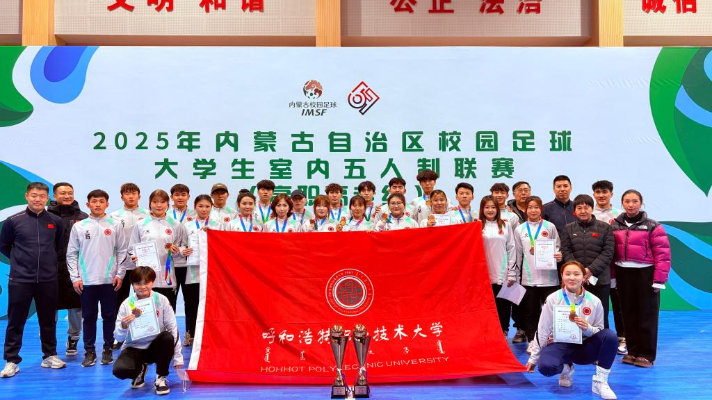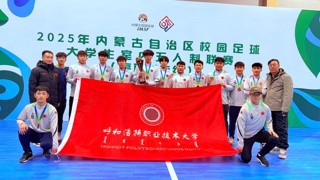 12月7日,由内蒙古自治区教育厅主办、内蒙古学生体育协会执行、内蒙古化工职业学院承办的2025年内蒙古自治区校园足球大学生室内五人制联赛(高职高专组)圆满落下帷幕。我校男足、女足两支代表队在多日激烈角逐中凭借顽强拼搏的斗志与扎实精湛的球技双双斩获季军,为学校赢得了荣誉,充分展现了呼和浩特职业技术大学学子昂扬向上的精神风貌与通力协作的团队凝聚力。