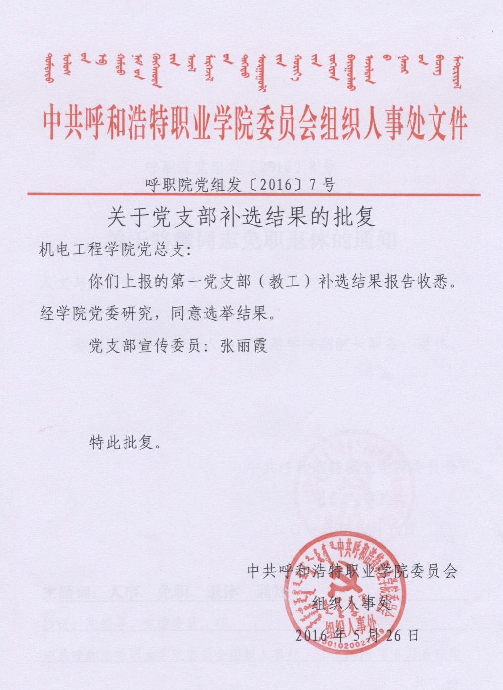 上一条:关于党支部改选结果的批复呼职院党组发[2016]6号 下一条:关于表彰2015年先进基层党组织、优秀共产党员和优秀党务工作者的决定
