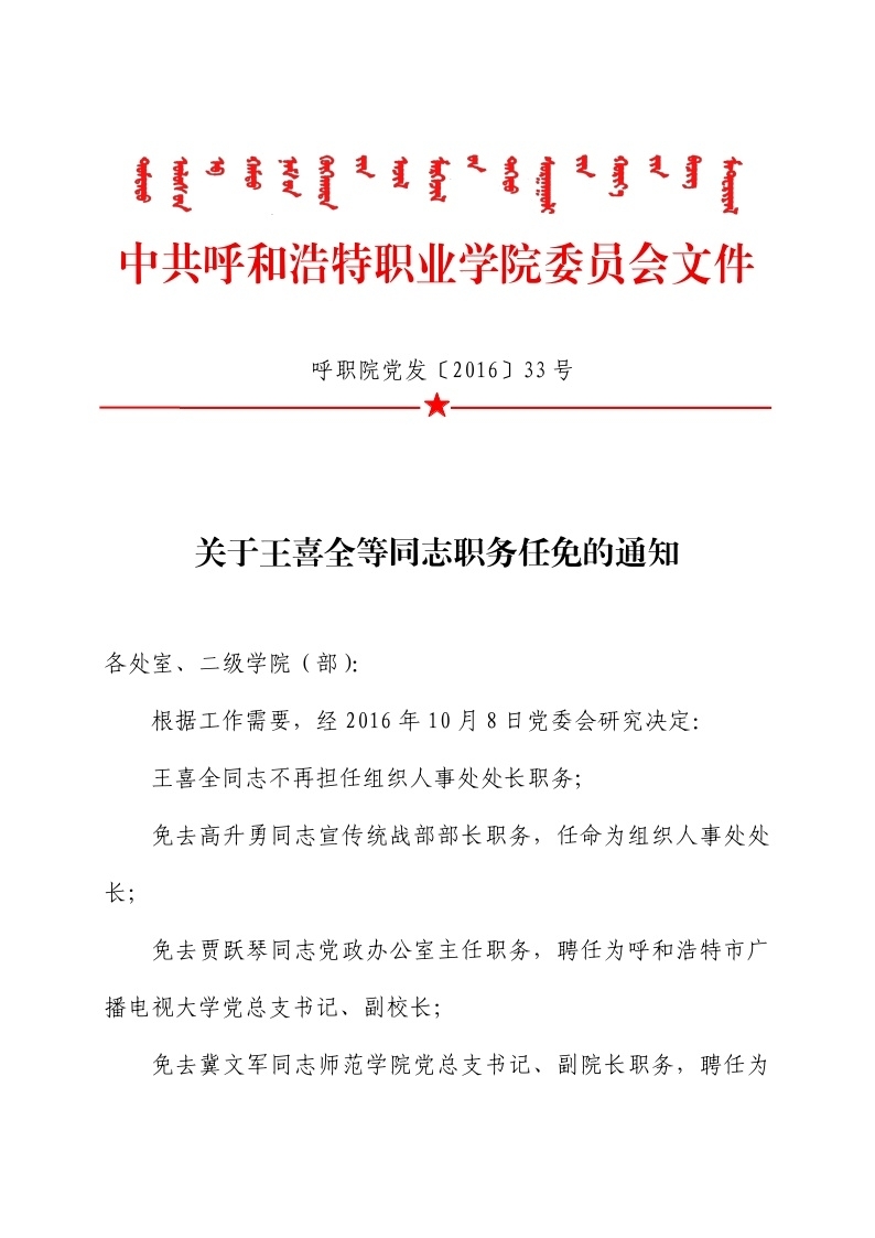 关于王喜全等同志职务任免的通知