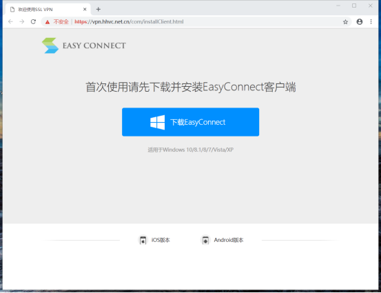 1、首先在浏览器地址栏输入:https://vpn.hhvc.net.cn,浏览器可能提示不安全网页