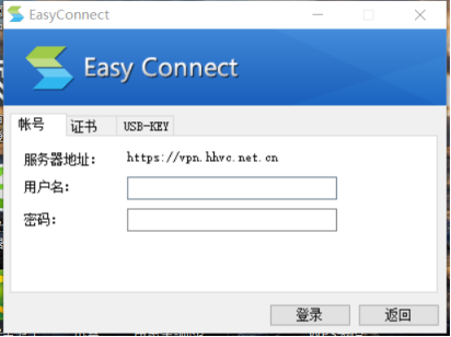 在服务器地址栏输入:https://vpn.hhvc.net.cn 点击连接