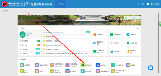 2、登录到一站式服务大厅,在业务直通车选择 “科研系统”功能。