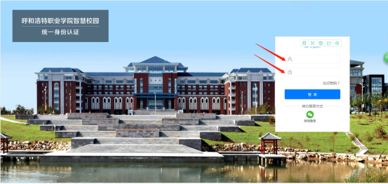 1、进入到统一身份认证界面,输入教职工号及密码进行登录(或通过微信扫码登录)