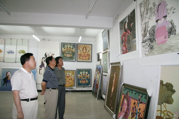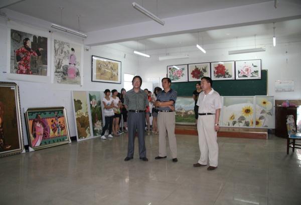 呼和浩特职业学院党委副书记、纪委书记董鹏、宣传统战部部长高升勇在美术与传媒学院副院长索英镌的陪同下参观了作品展。一致认为学生的作品极富观赏性、艺术性,也有很好的实用价值。