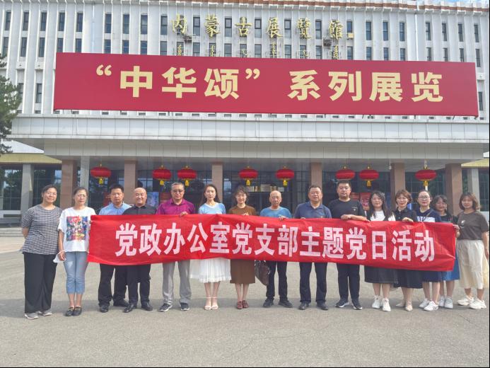 参观“中华颂——我们心中的模样”综合展。6月30日下午,组织党员干部、入党积极分子到内蒙古展览馆参观“中华颂——我们心中的模样”综合展。宣传统战部党支部、党政办公室党支部将参观此项展览作为推动党史学习教育常态化长效化、开展“四史”宣传教育的重要“课堂”,作为铸牢中华民族共同体意识的生动“教材”。通过参观展览,进一步强化了全体党员、教职工对伟大祖国、中华民族、中华文化、中国共产党、中国特色社会主义的认同。