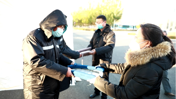 今日呼市气温骤降,在建筑工程系领导班子的陪同下,两个党支部的5名党员代表逐一到15个疫情防控点,为志愿者们送去暖水袋和坐垫各30个。党委委员、宣传统战部部长刘惠华同志亲切询问同学们值守中存在的困难,并不断叮嘱同学们要注意保暖,做好自我防护,同时感谢同学们为学院抗疫做出贡献;团委党支部书记张婧同志也向同学们表达了深切关爱,感谢同学们用责任和担当助力学院筑牢疫情防控安全防线;宣传统战部党支部书记苏宇同志叮嘱同学们要多喝热水,注意身体,感谢同学们默默的付出;团委党支部组织委员贾宏宙同志对同学们说道:“你们用实际行动践行了“奉献、友爱、互助、进步”的志愿服务精神,你们是呼职学子的榜样!”一句句暖心的话语道出党员教师对学生的关爱。